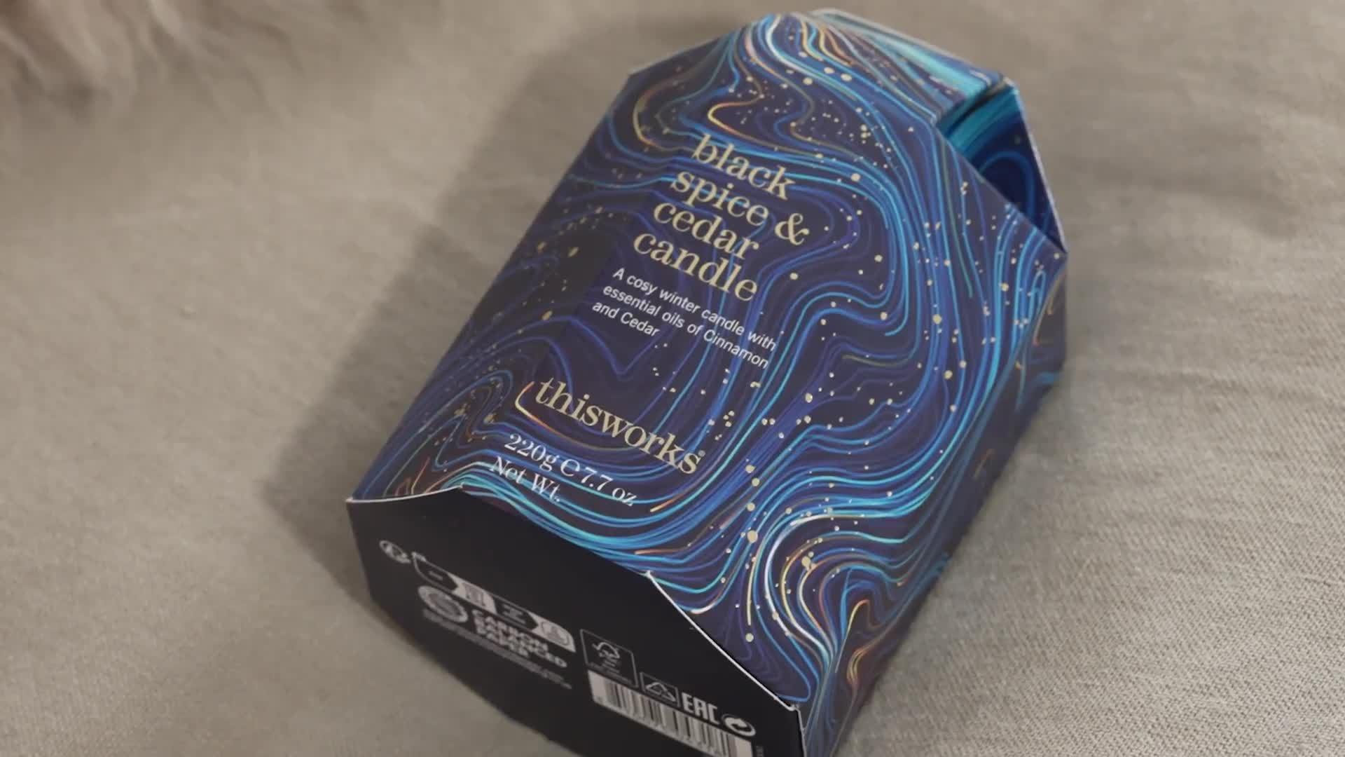 How: Let the nostalgic aroma of Cinnamon and Cedar essential oils, combined with Frankincense and Myrrh, create a feeling of relaxation and pleasure. Burn time approximately 40 hours.