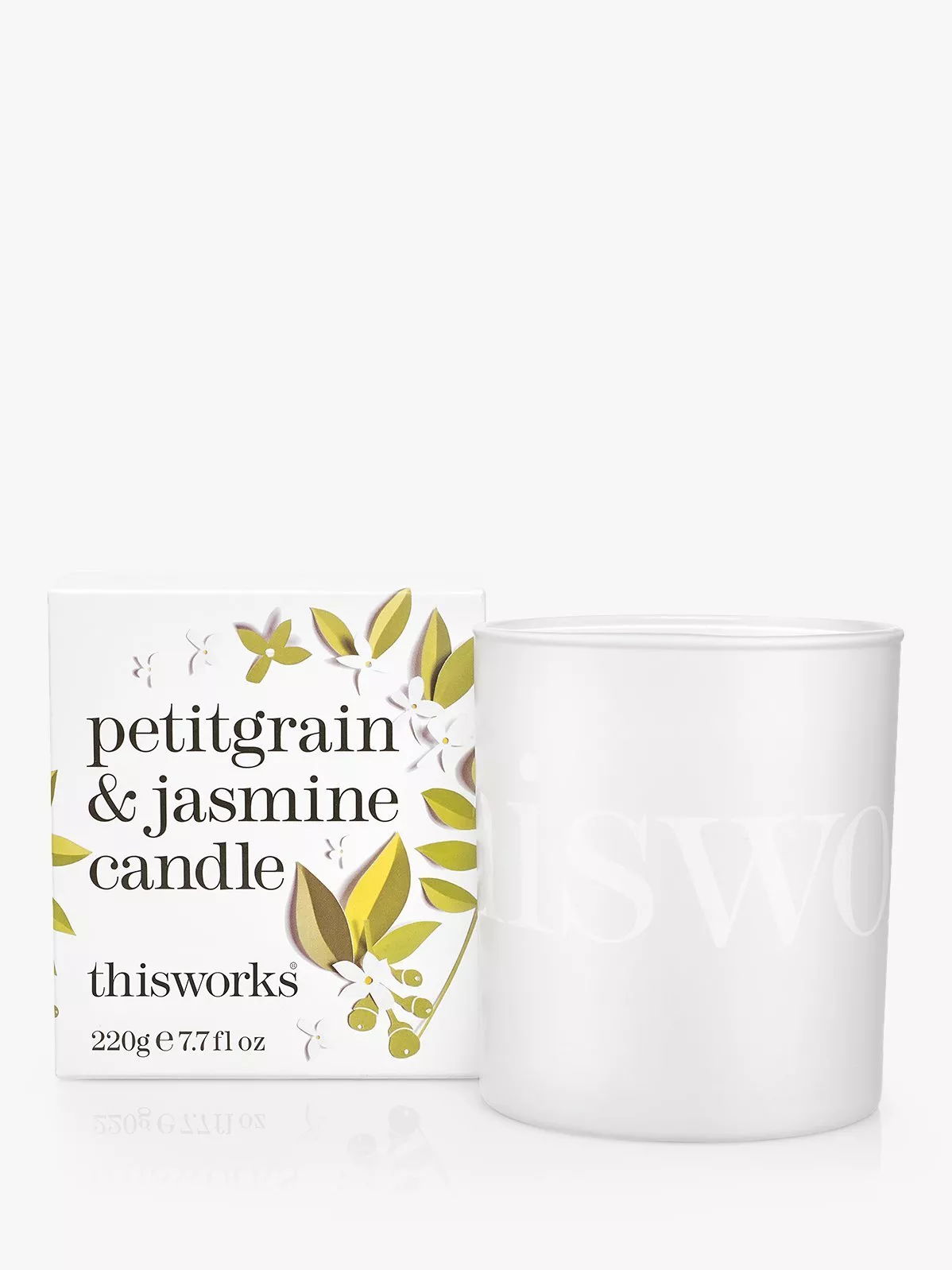 A luxurious, high quality wax candle, hand poured and blended with essential oils. An aroma of soothing Petitgrain and fragrant Jasmine.