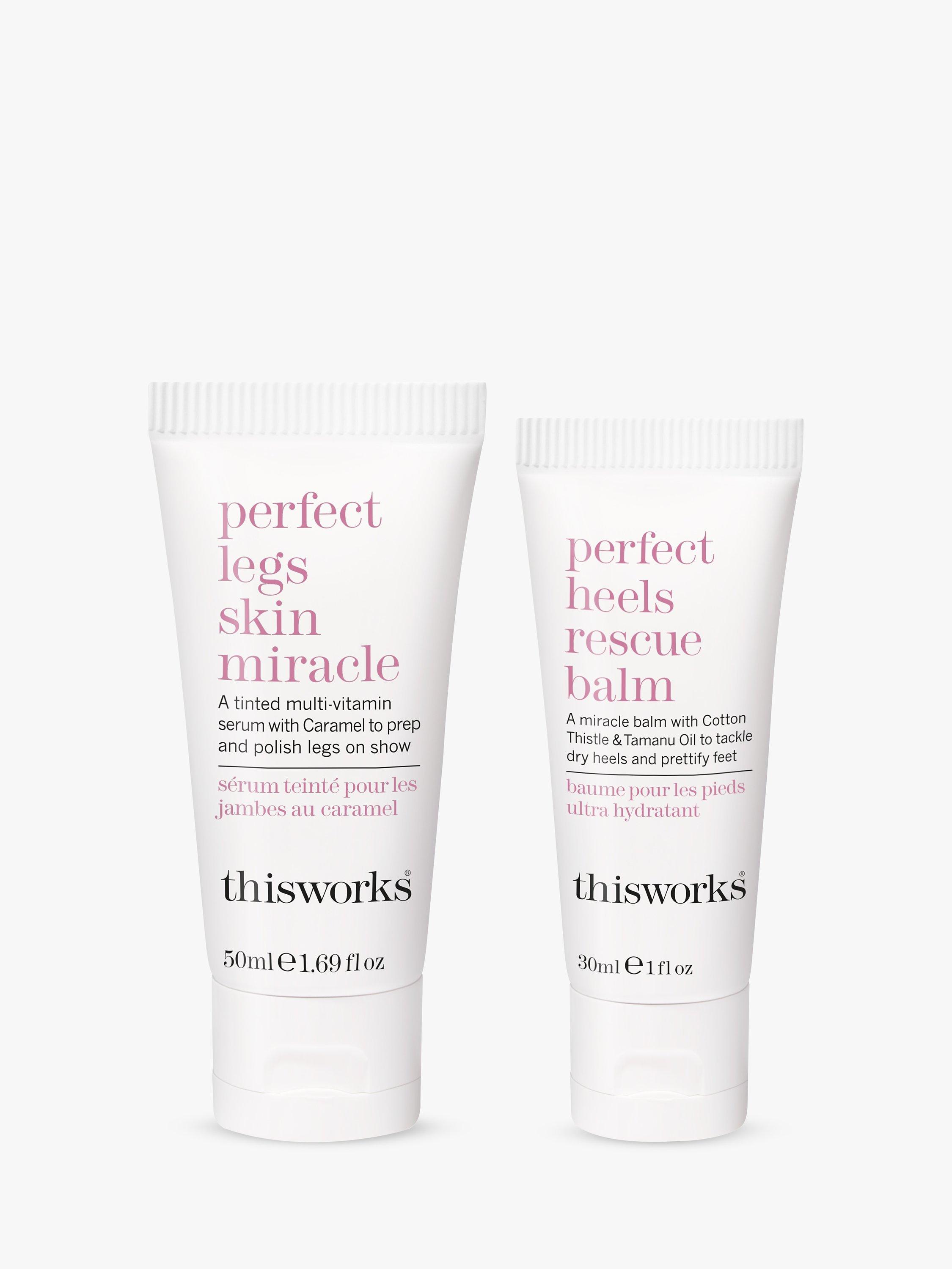 How: Perfect Heels Rescue Balm is expertly blended with zesty Lemon, regenerating Ecocert Cotton Thistle and calming Lavender which work together to help rebuild and hydrate the skin barrier. Perfect Legs Skin Miracle is enriched with Vitamin C and Vitamin E to even out skin, Arnica which helps fade bruising and natural Caramel to give extra warmth to any skin tone.