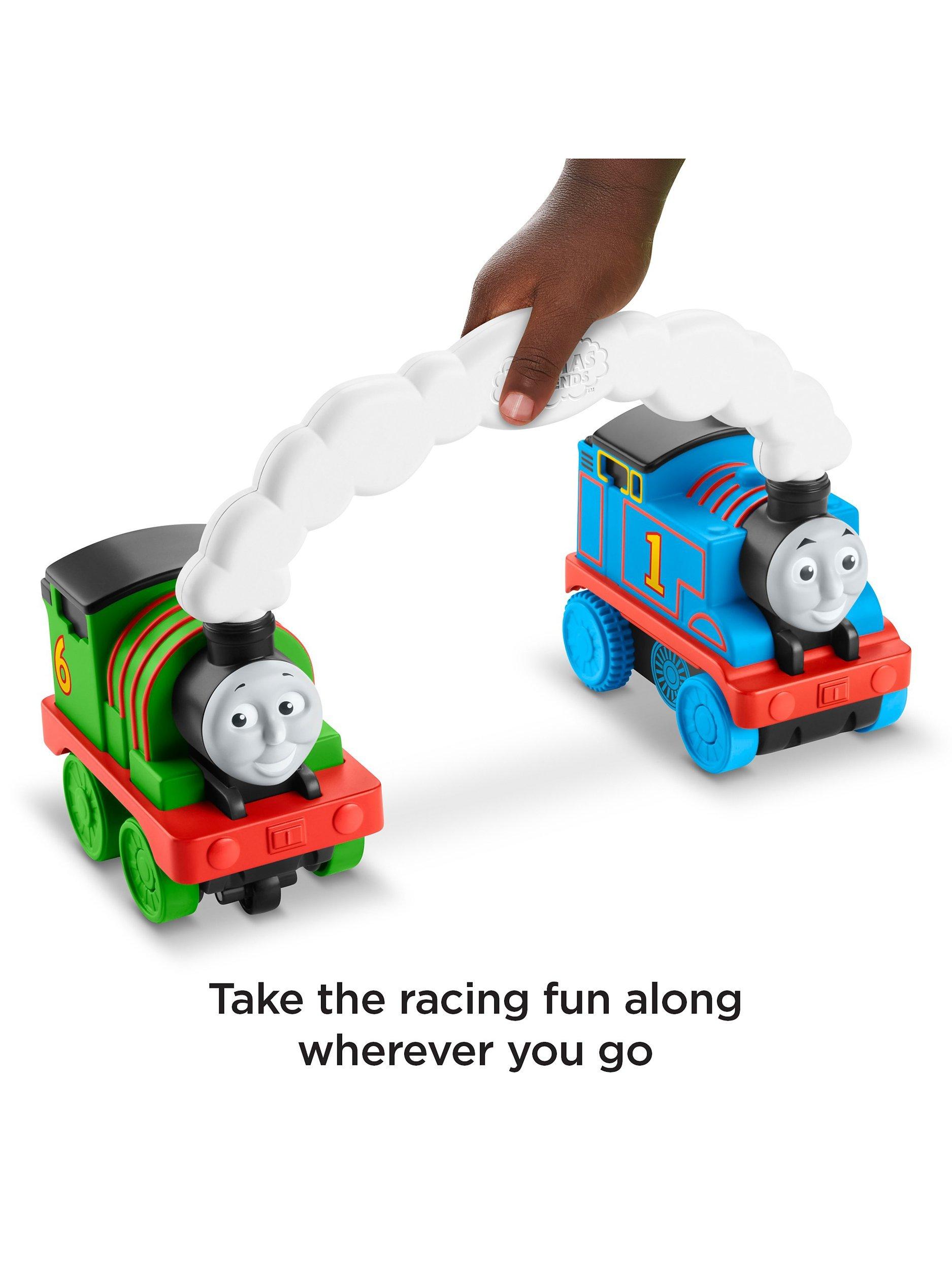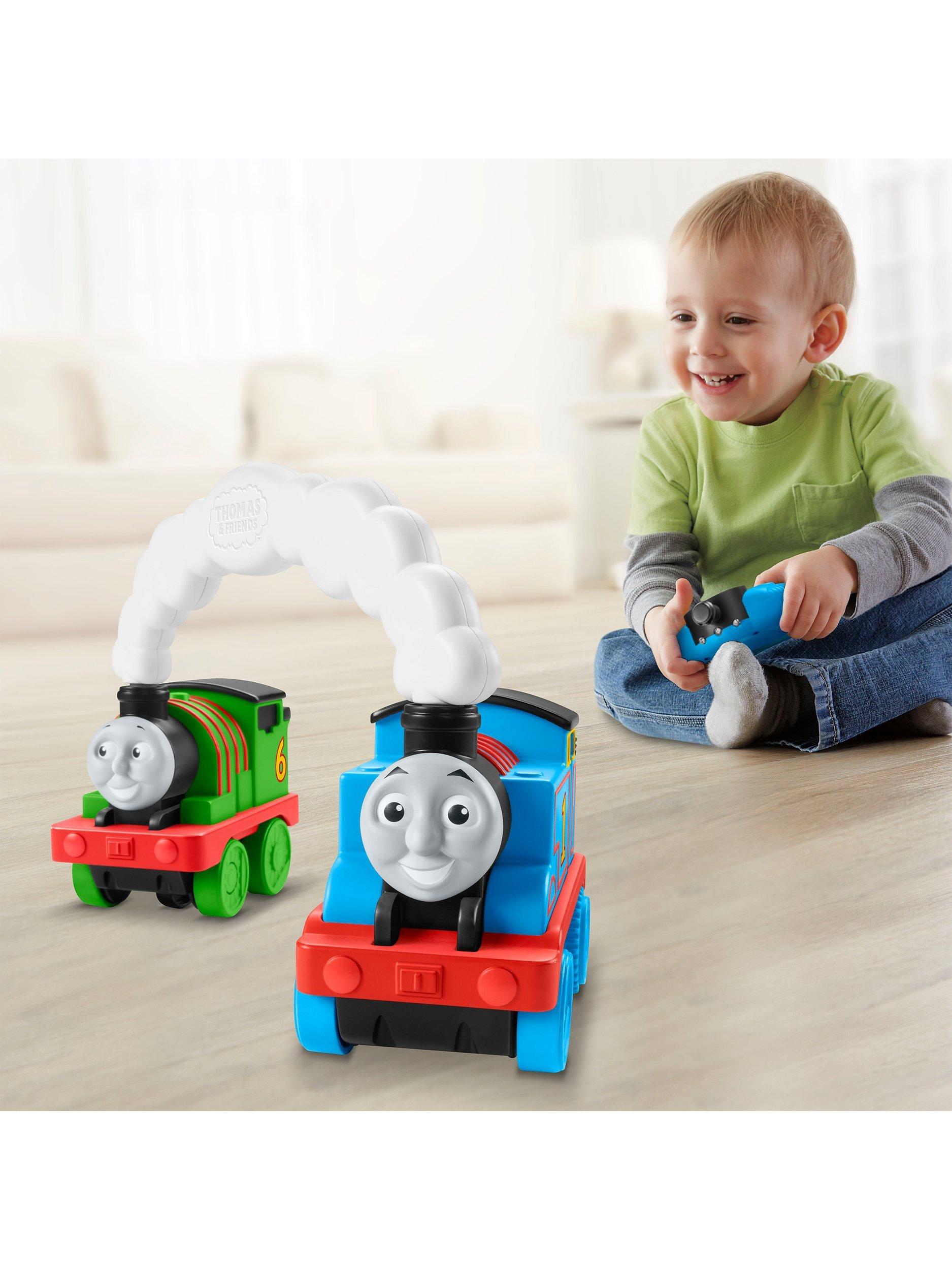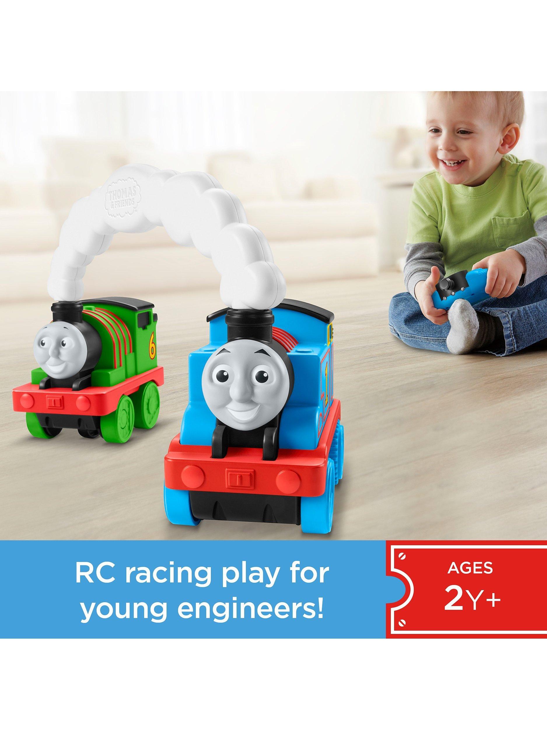 Little conductors can zoom all around Sodor and beyond, with the Thomas & Friends Race & Chase R/C from Fisher-Price. These large remote-controlled train engines of Thomas the Tank Engine and Percy are linked with a steam cloud handle.
