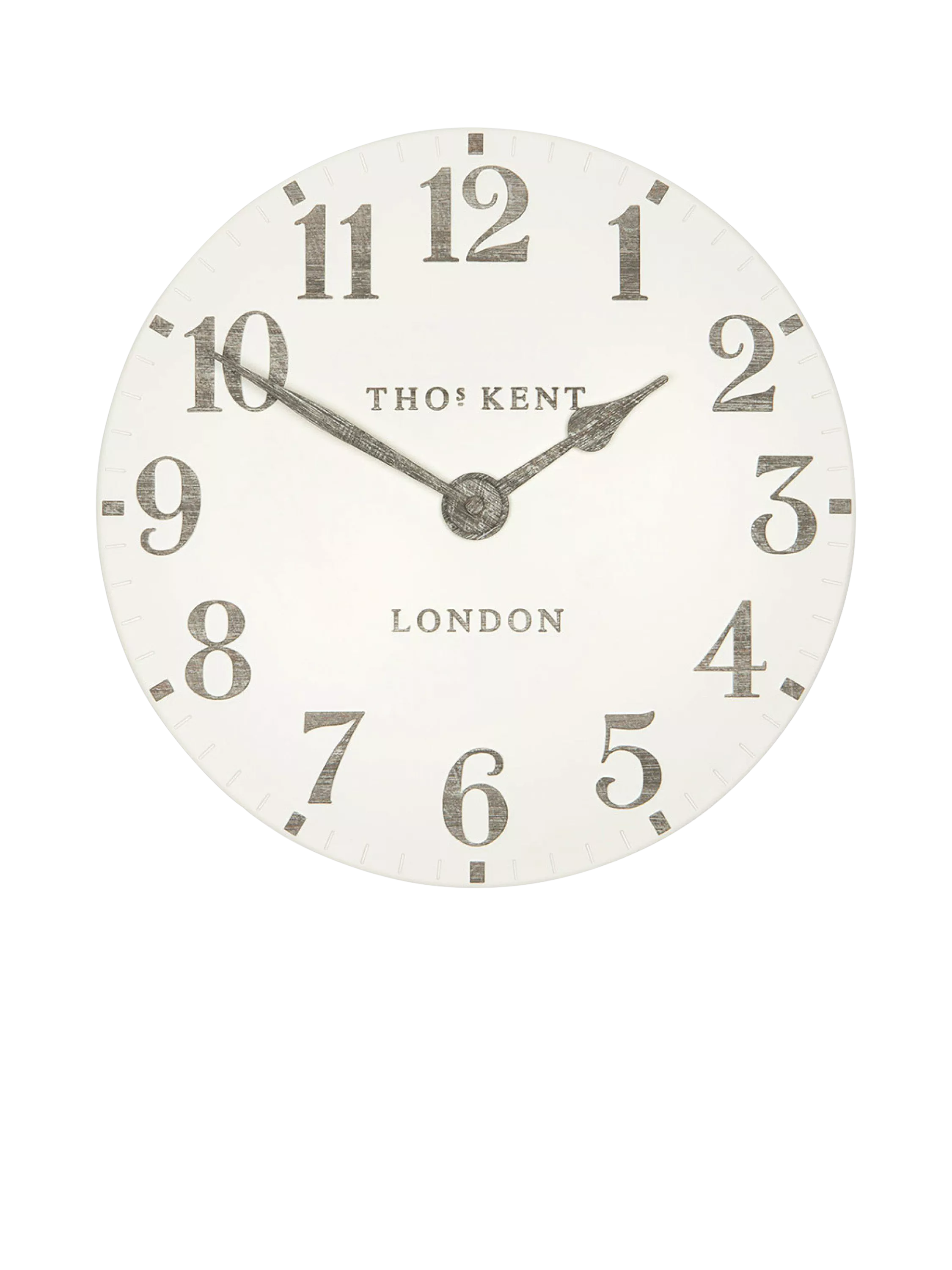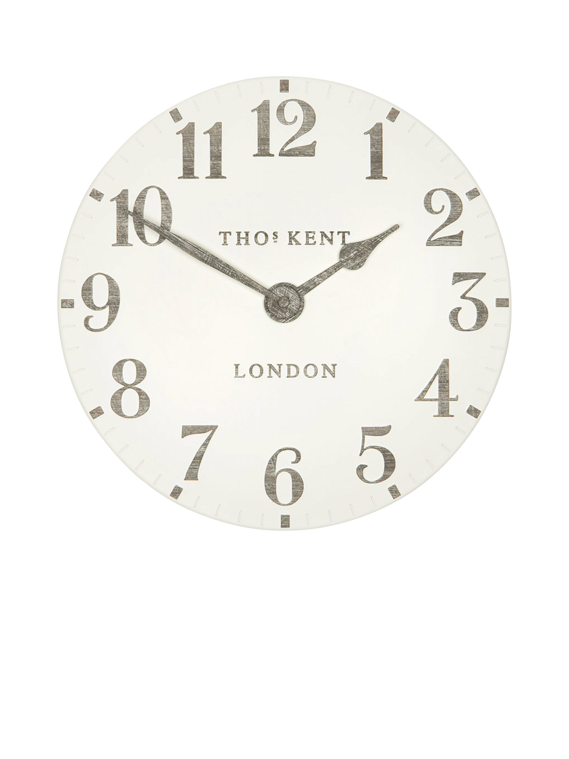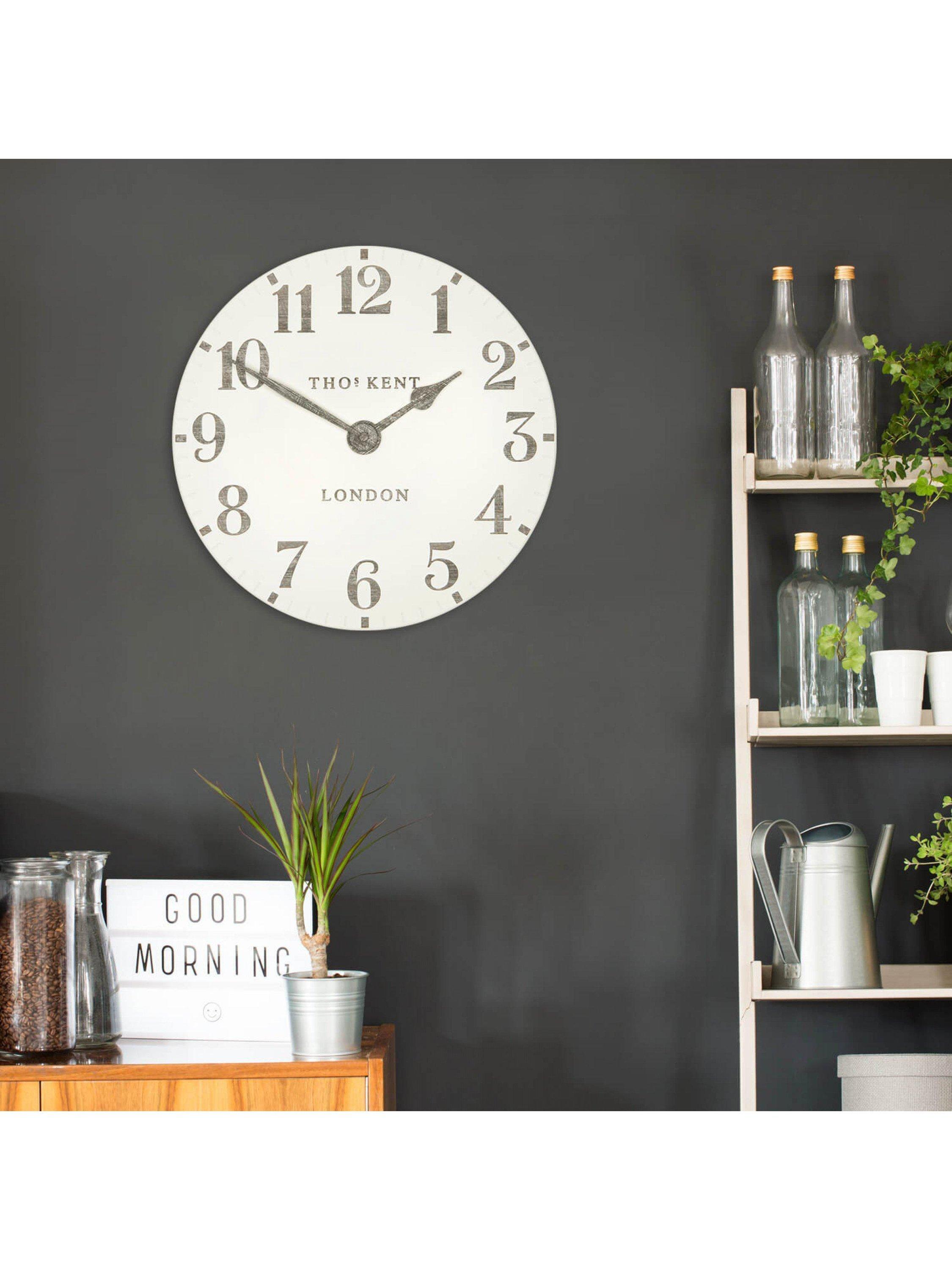 Complete with a ceramic-effect matt finish, this open-faced Thomas Kent clock makes a statement on any wall with its clear analogue display. Raised, contrasting Arabic numerals with a wood-effect print sit beautifully on a gently curved clock face.
