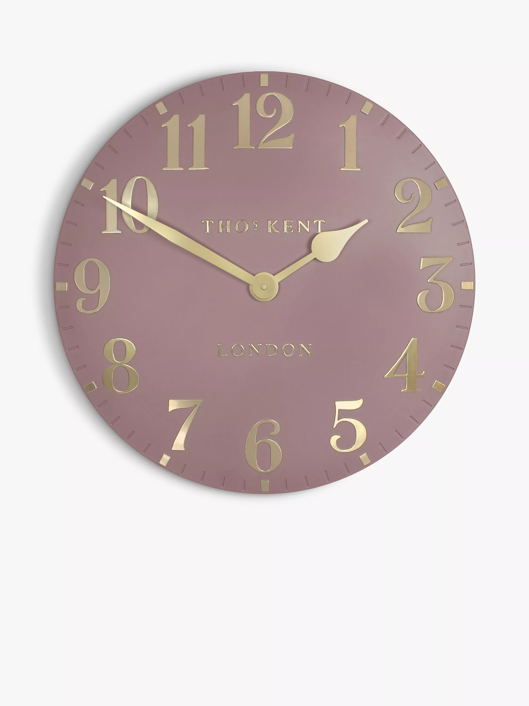 Thomas Kent's Arabic wall clock is a contemporary elegant design with a clock face in a choice of trend-led interior colours in a matt finish.