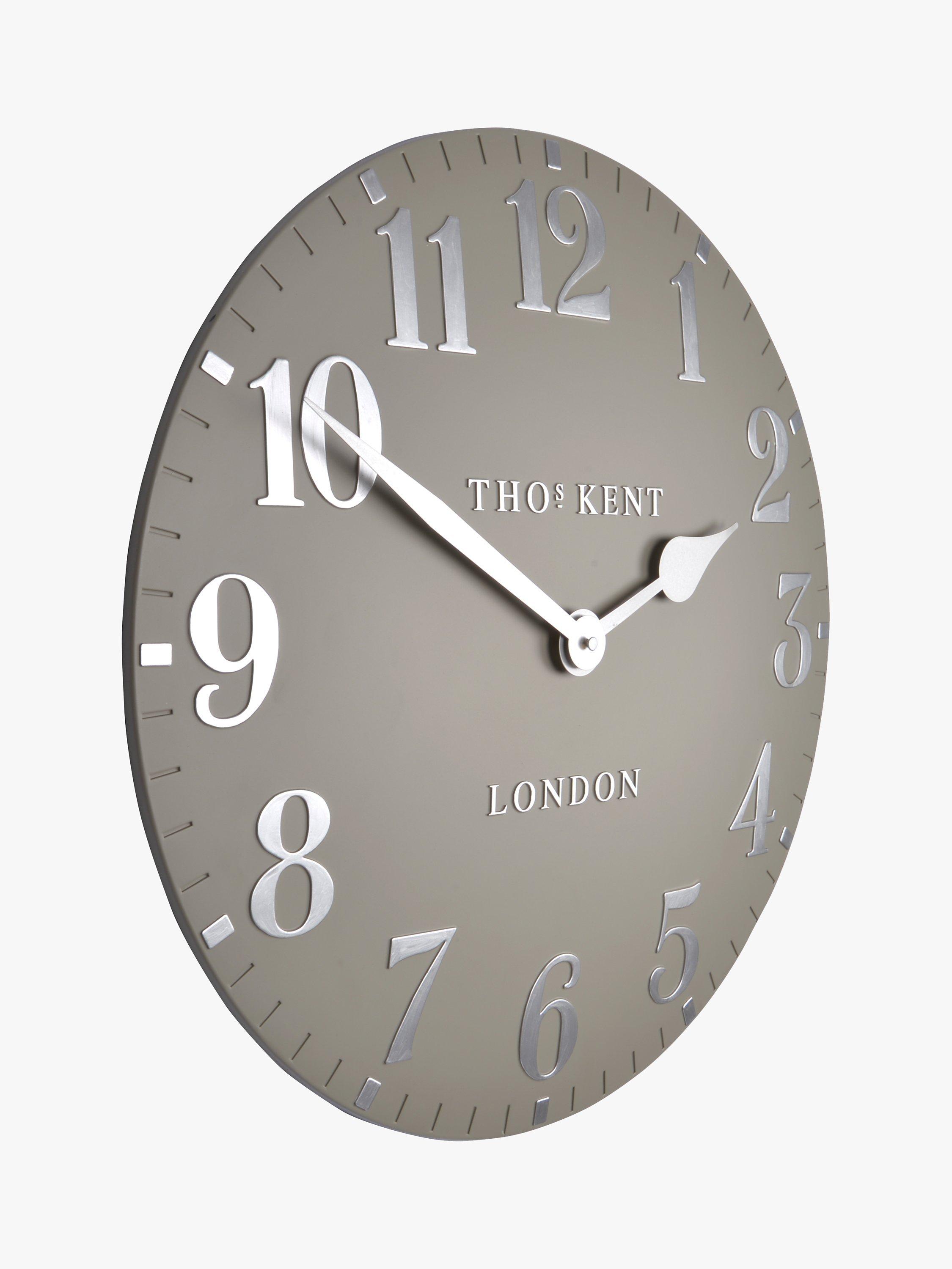 Complete with a ceramic-effect matt finish, this open-faced Thomas Kent clock makes a statement on any wall with its clear analogue display. Raised, contrasting Arabic numerals sit beautifully on a gently curved clock face.