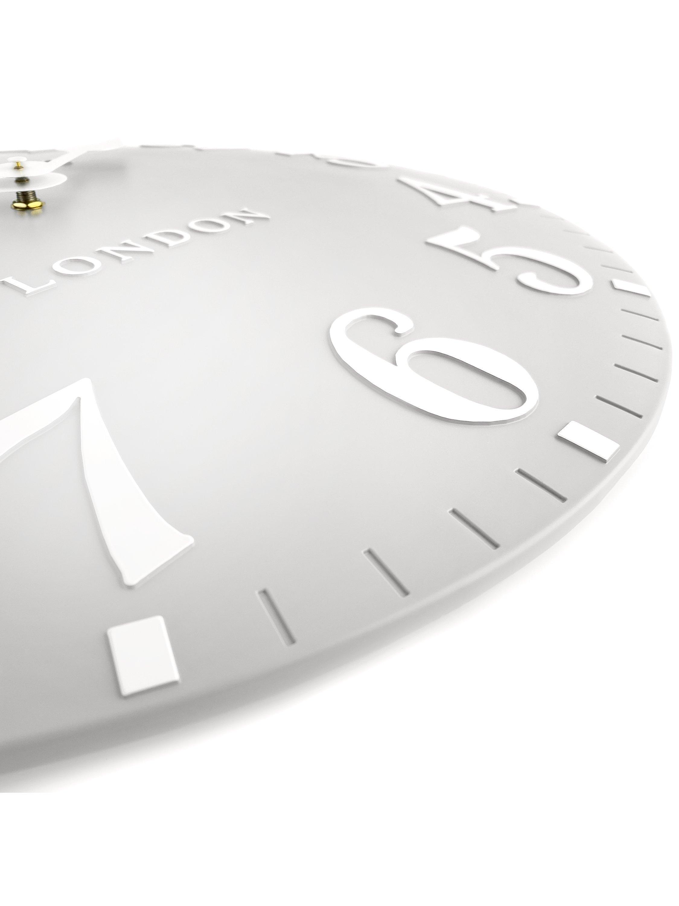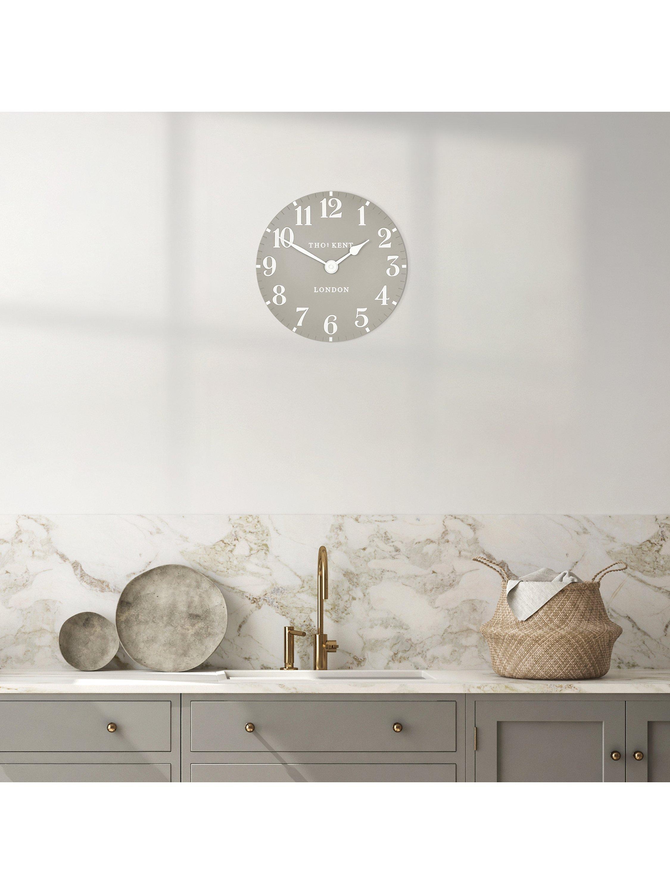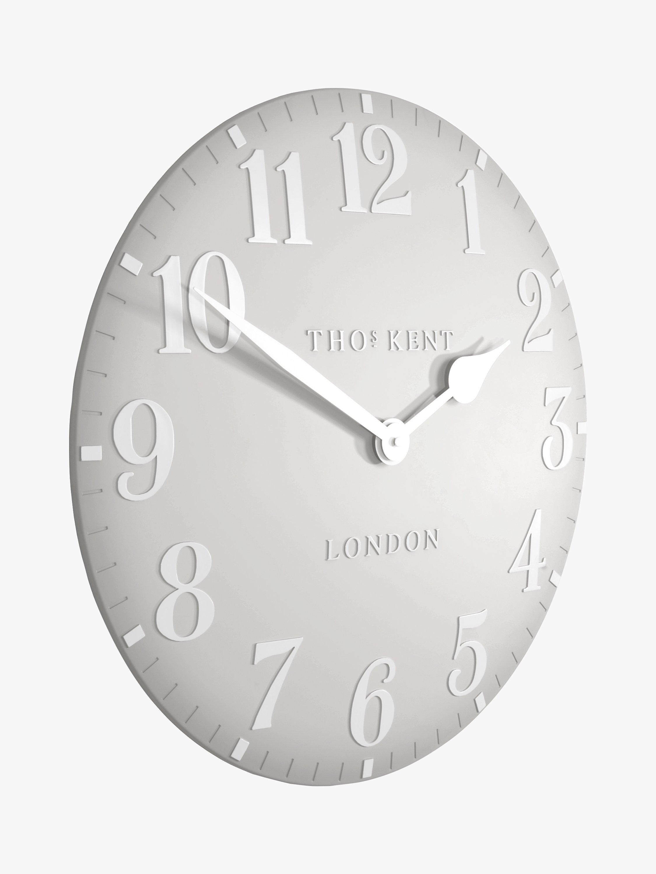 Complete with a ceramic-effect matt finish, this open-faced Thomas Kent clock makes a statement on any wall with its clear analogue display. Raised, contrasting Arabic numerals sit beautifully on a gently curved clock face.