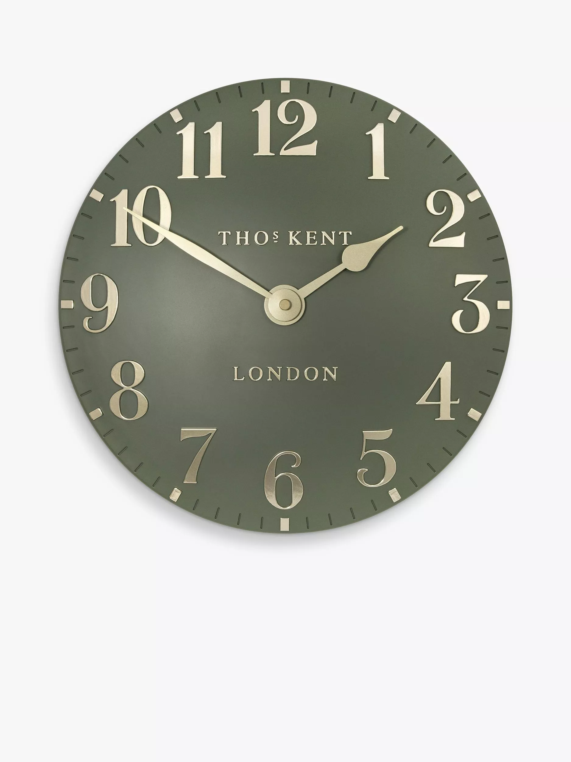 Thomas Kent's Arabic wall clock is a contemporary elegant design with a clock face in a choice of trend-led interior colours in a matt finish.