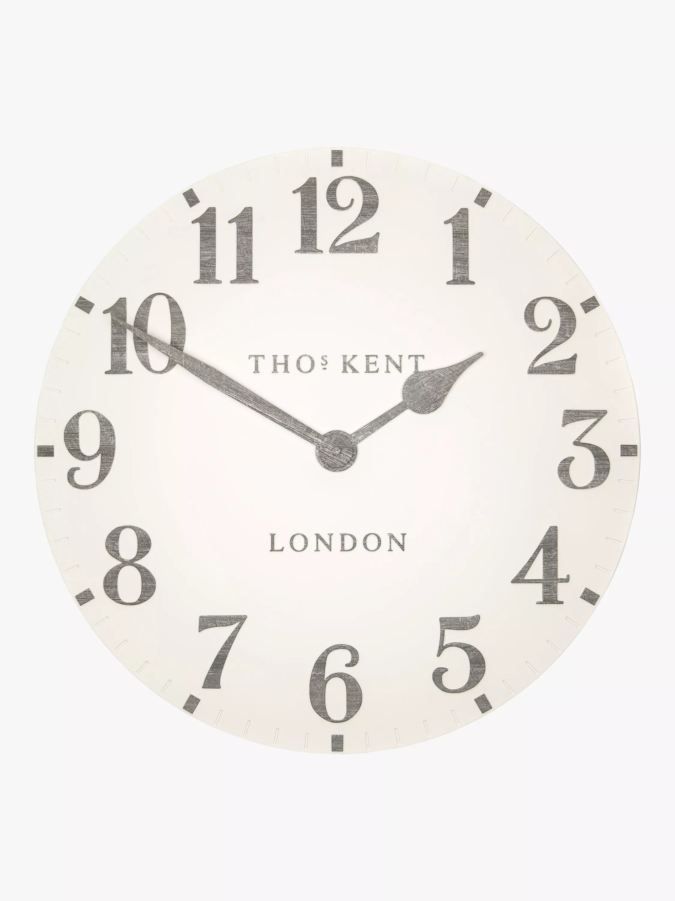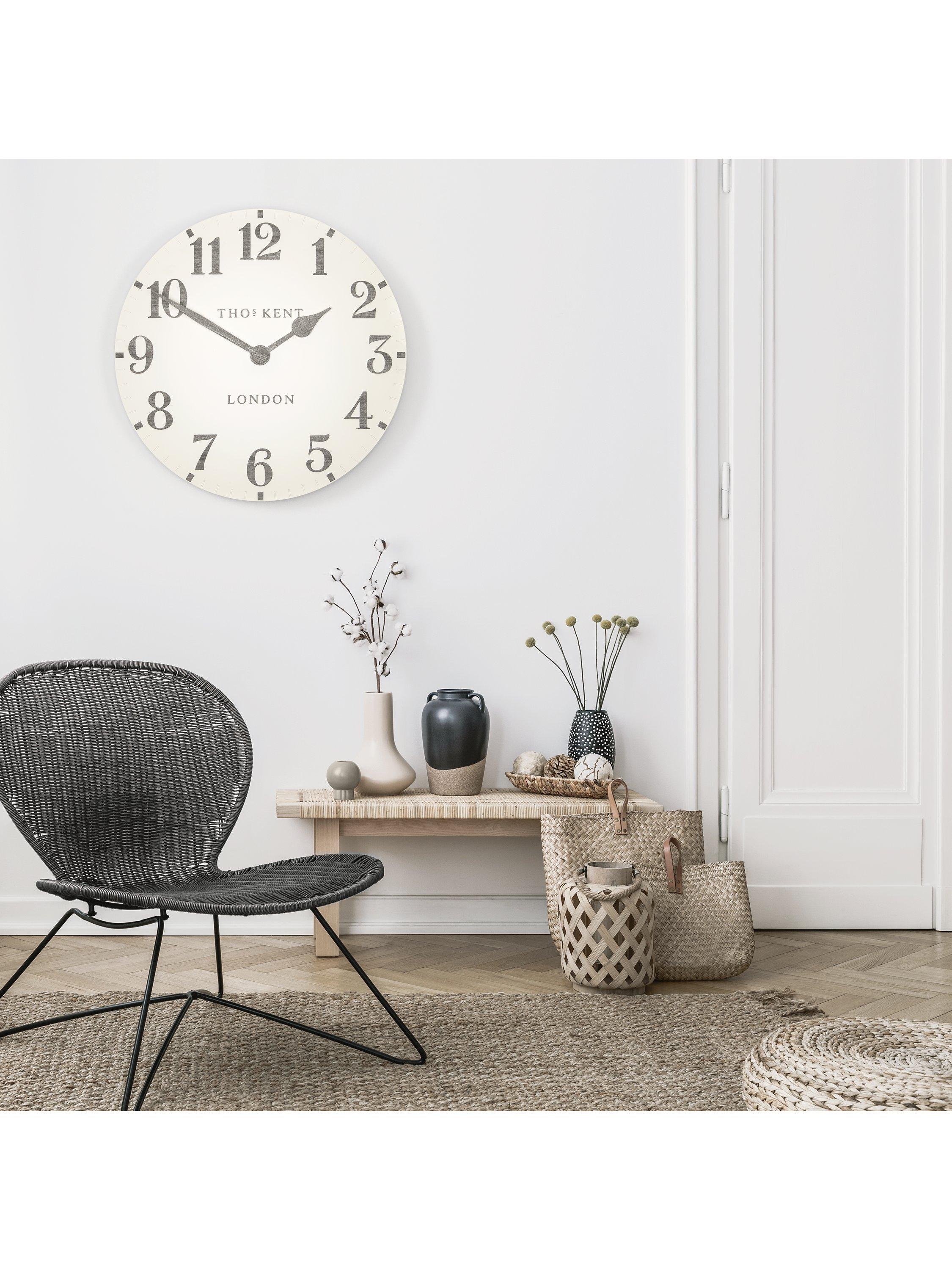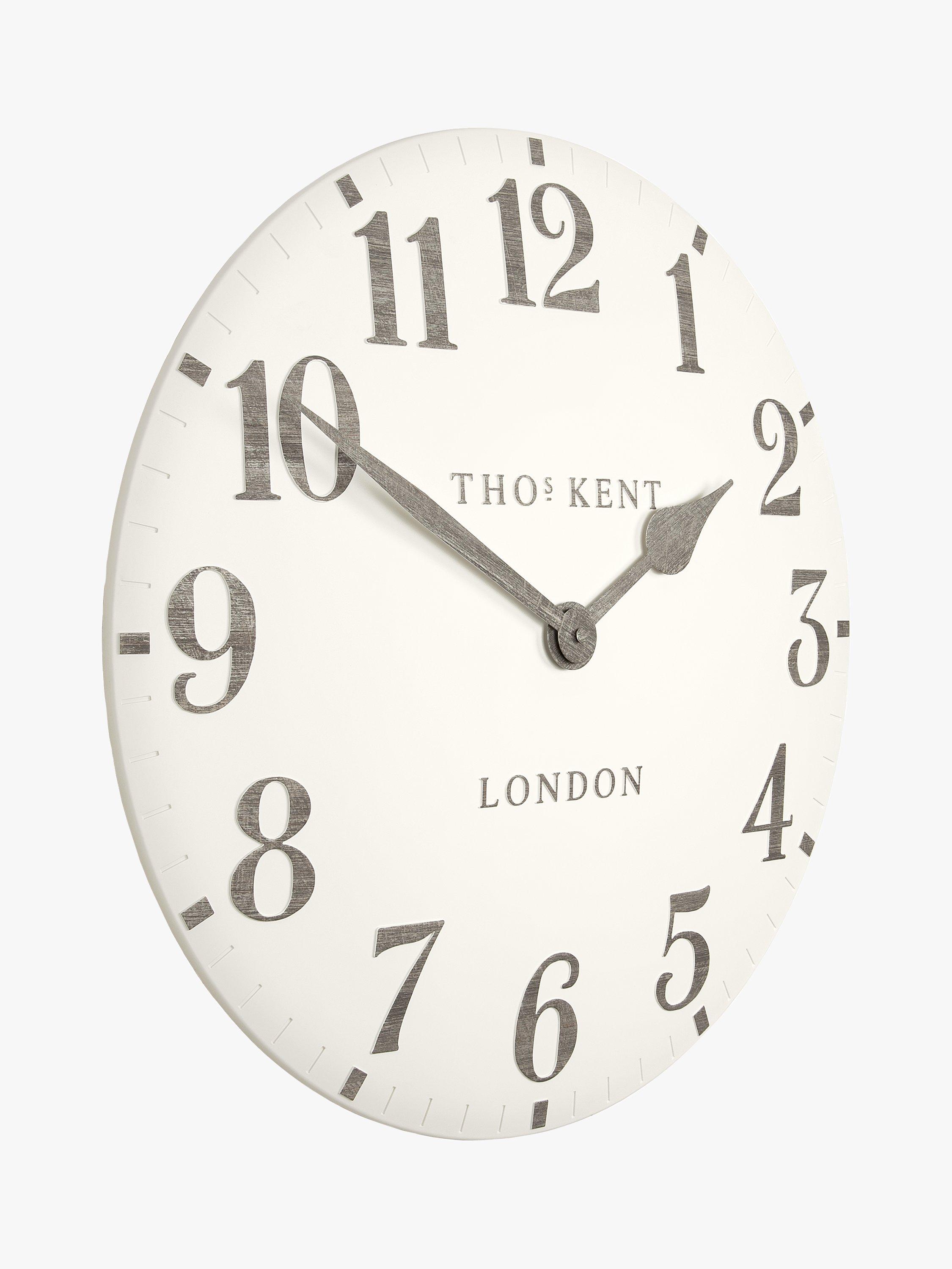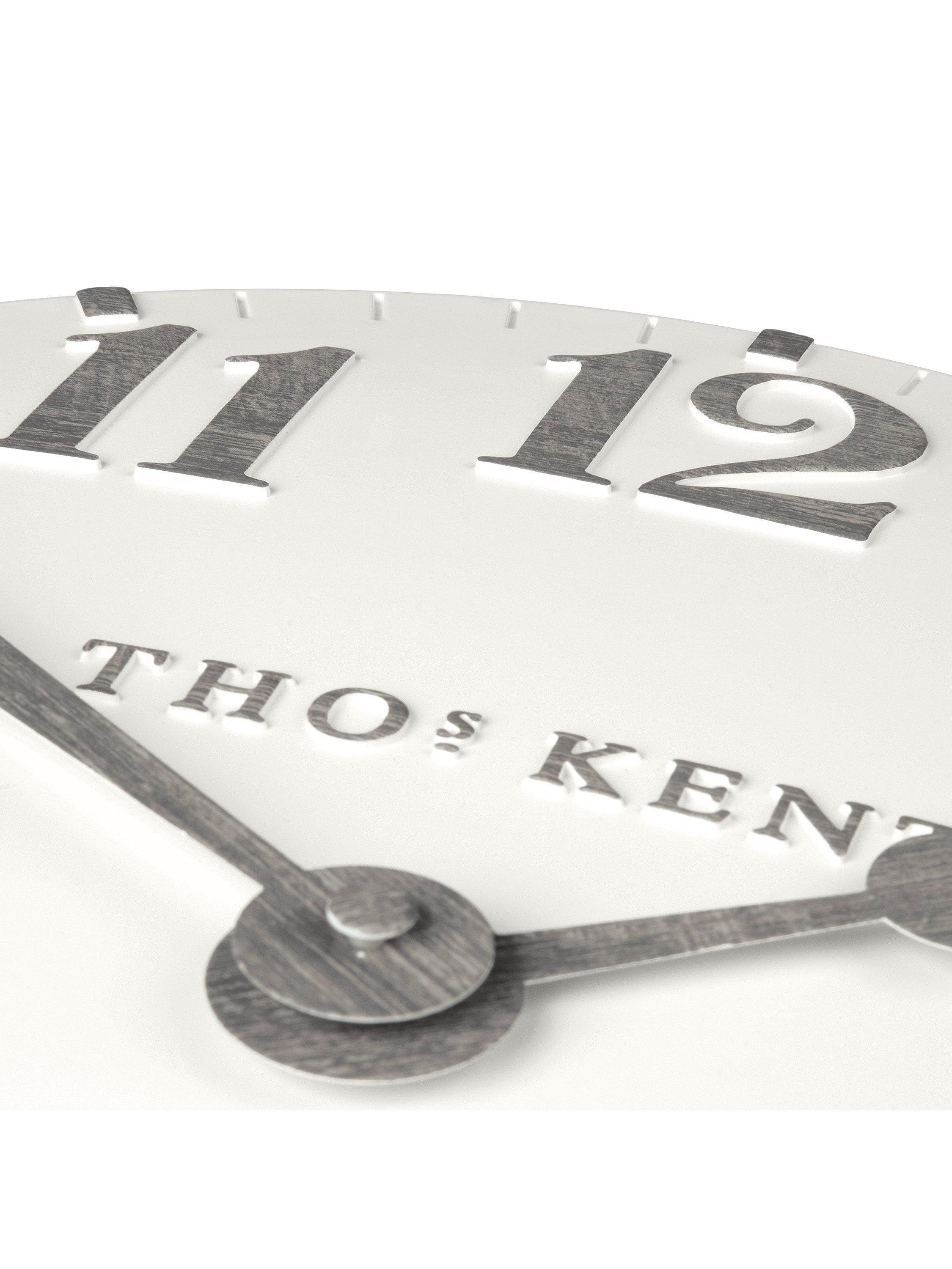 Complete with a ceramic-effect matt finish, this open-faced Thomas Kent clock makes a statement on any wall with its clear analogue display. Raised, contrasting Arabic numerals sit beautifully on a gently curved clock face.