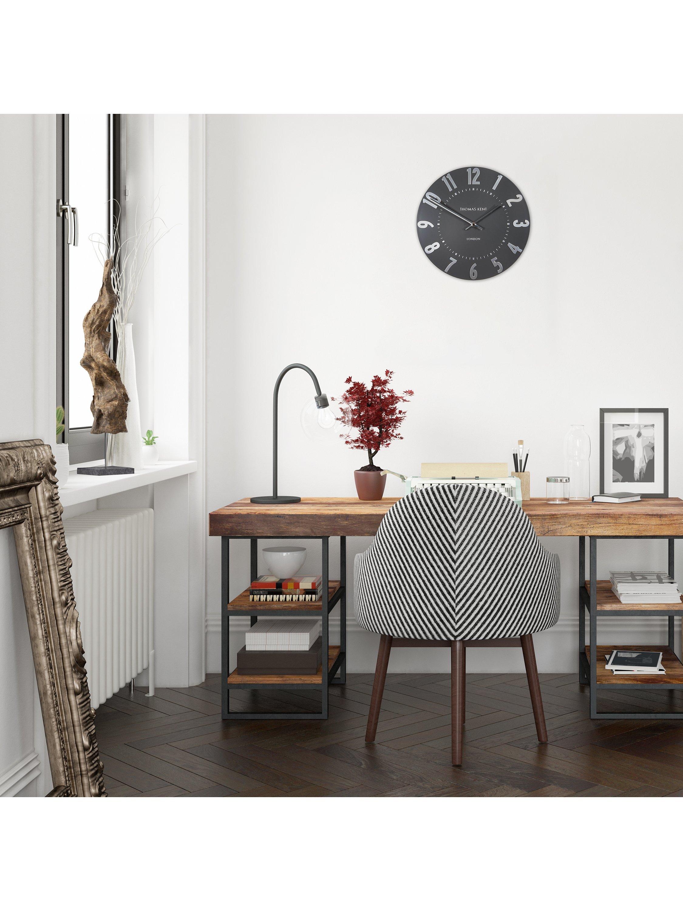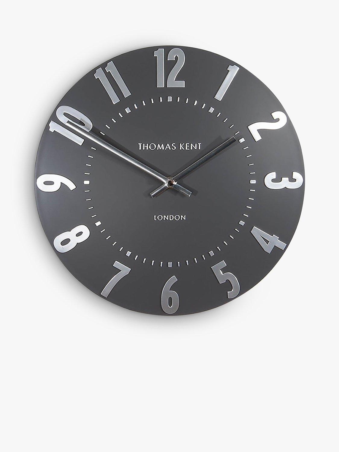 Thomas Kent's Mulberry wall clock is a contemporary elegant design with easily readable Arabic numerals in shimmering foil that contrast the understated matt finish of the clock face.