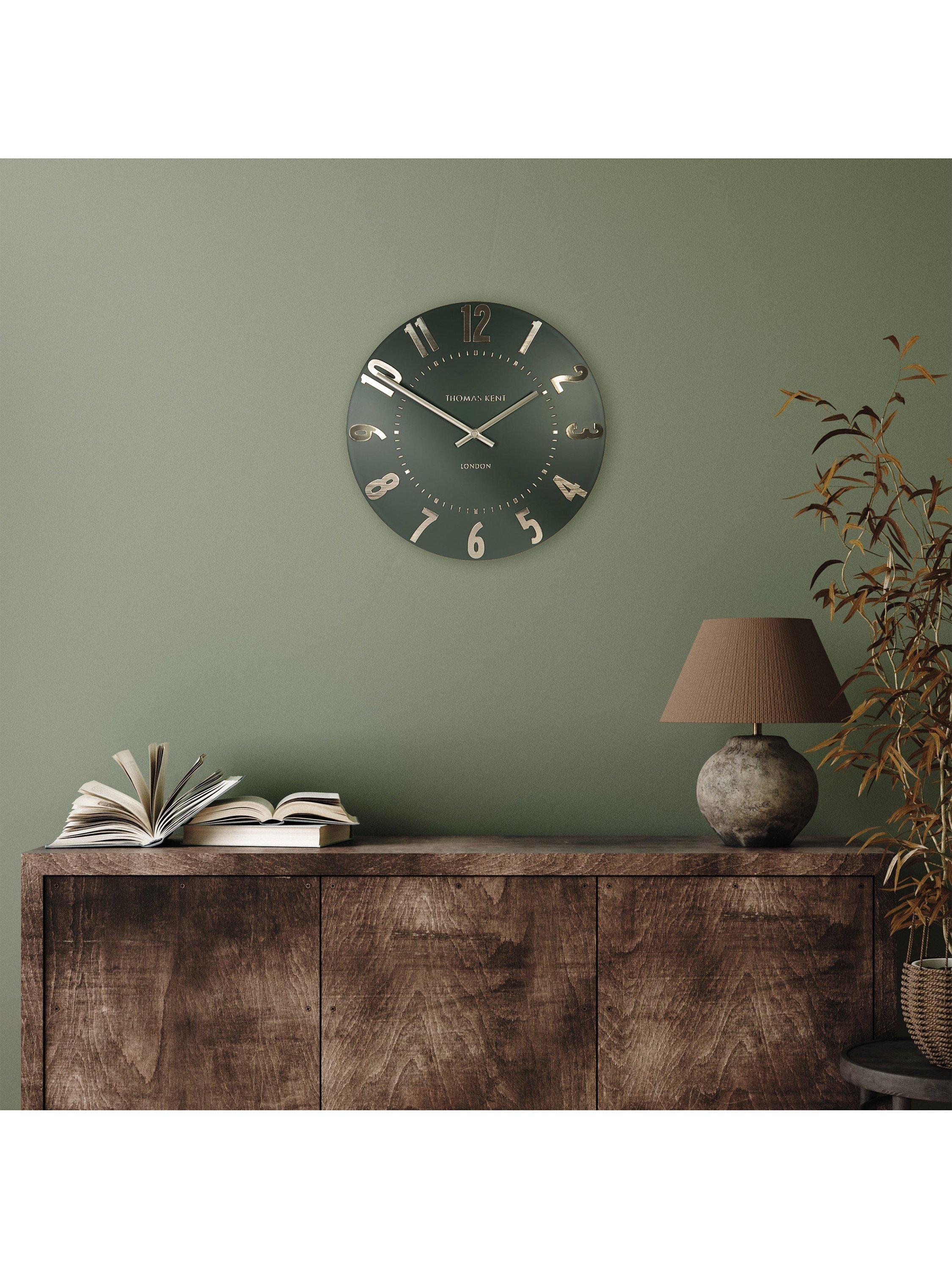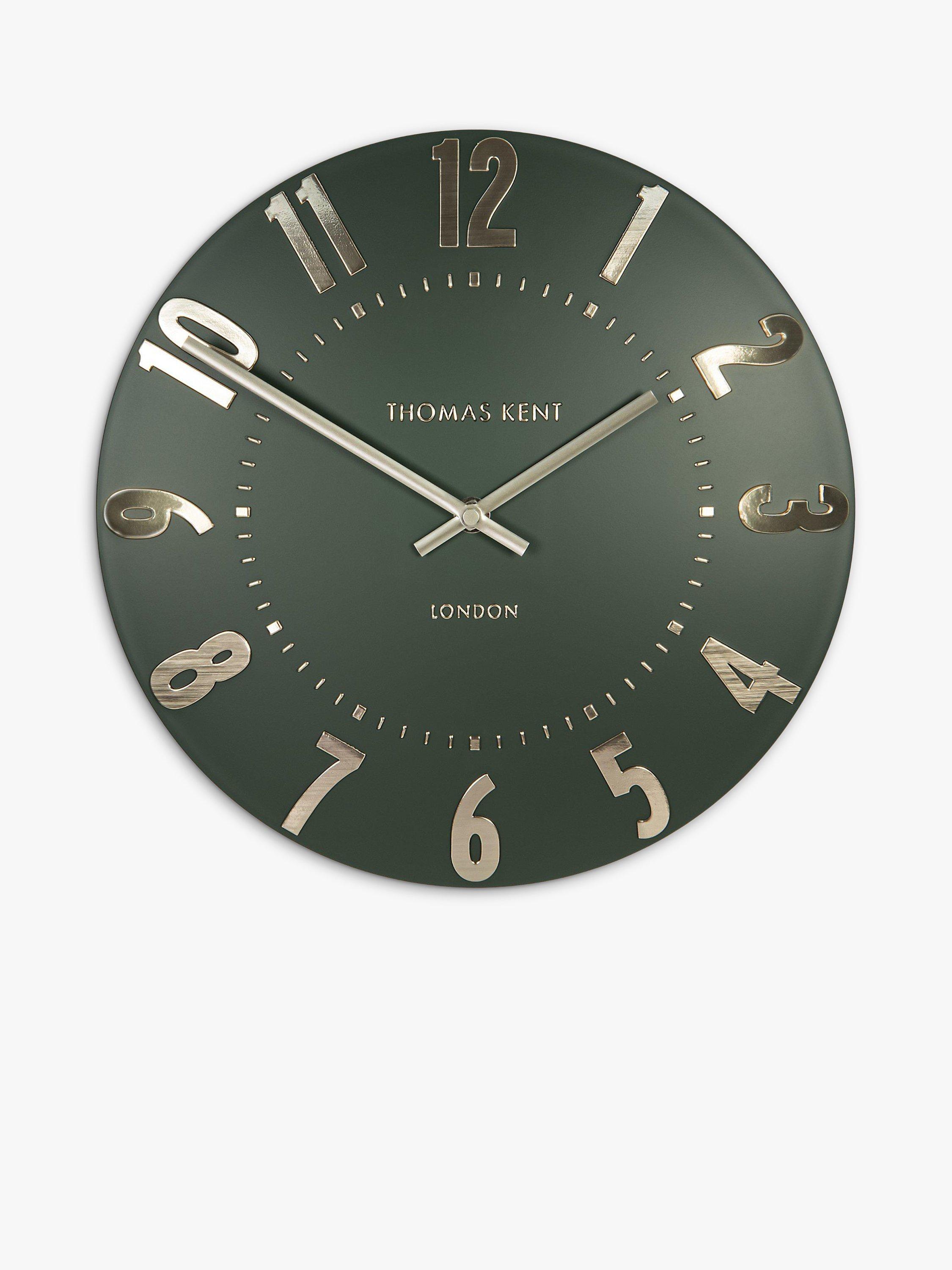 Thomas Kent's Mulberry wall clock is a contemporary elegant design with easily readable Arabic numerals in shimmering foil that contrast the understated matt finish of the clock face.