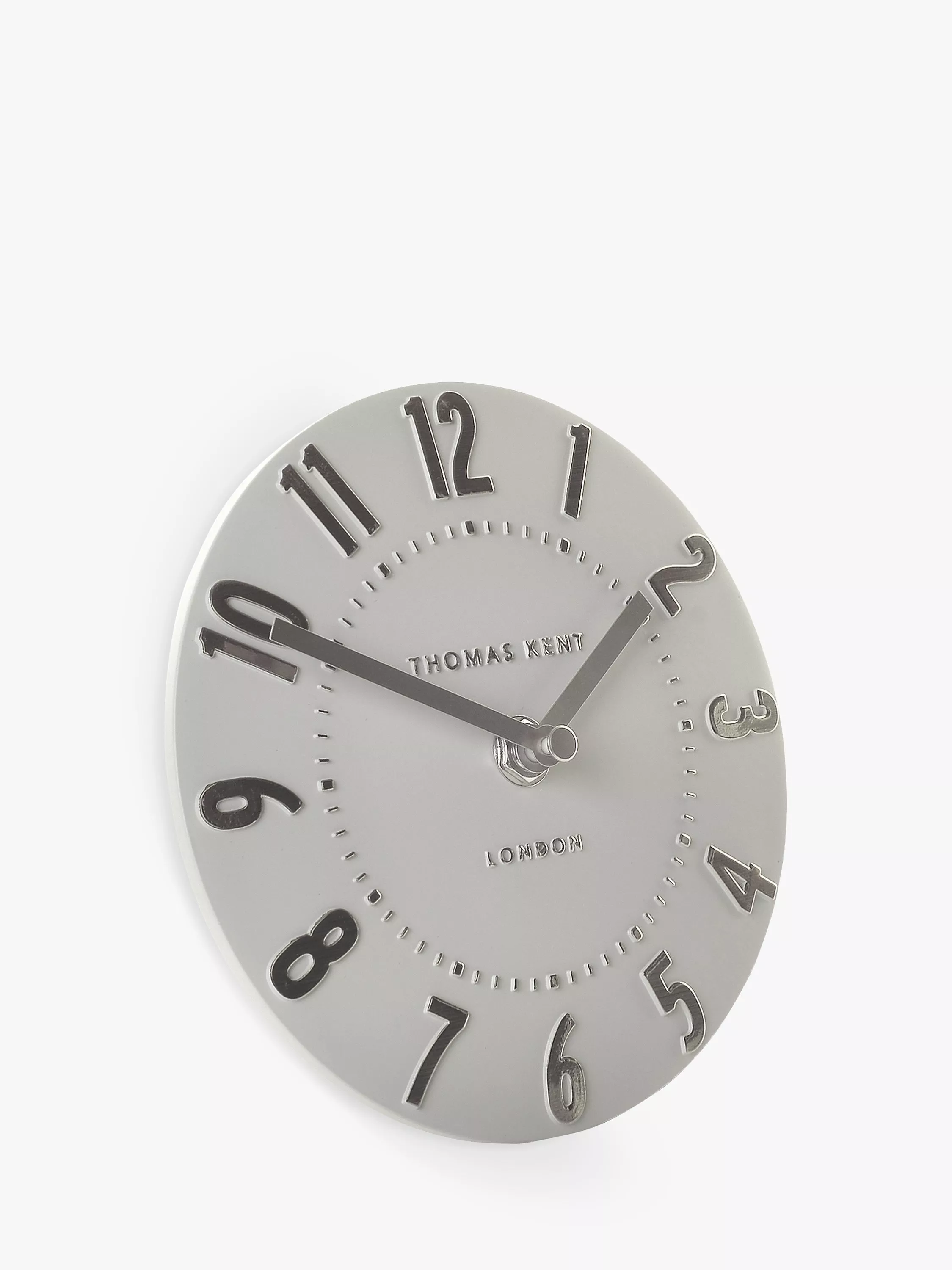 From Thomas Kent's Mulberry range, which focuses on contemporary and effortlessly elegant-looking design. This mantel clock features easily readable Arabic numerals, with a shimmering foil finish that contrasts the understated matte of the face. Simple baton hands contribute to a sophisticated feeling.