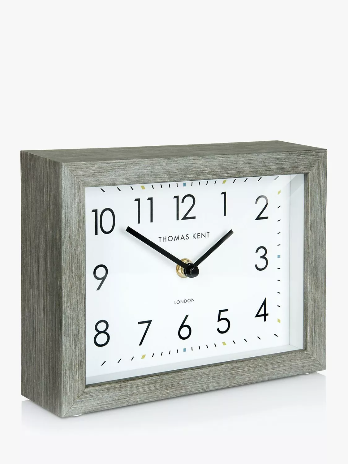 A wood-effect finish adds a smart touch to this rectangular Smithfield mantel clock from Thomas Kent. The Arabic numerals and matching clock hands bring a contemporary look. Quartz movement ensures accurate time-keeping.