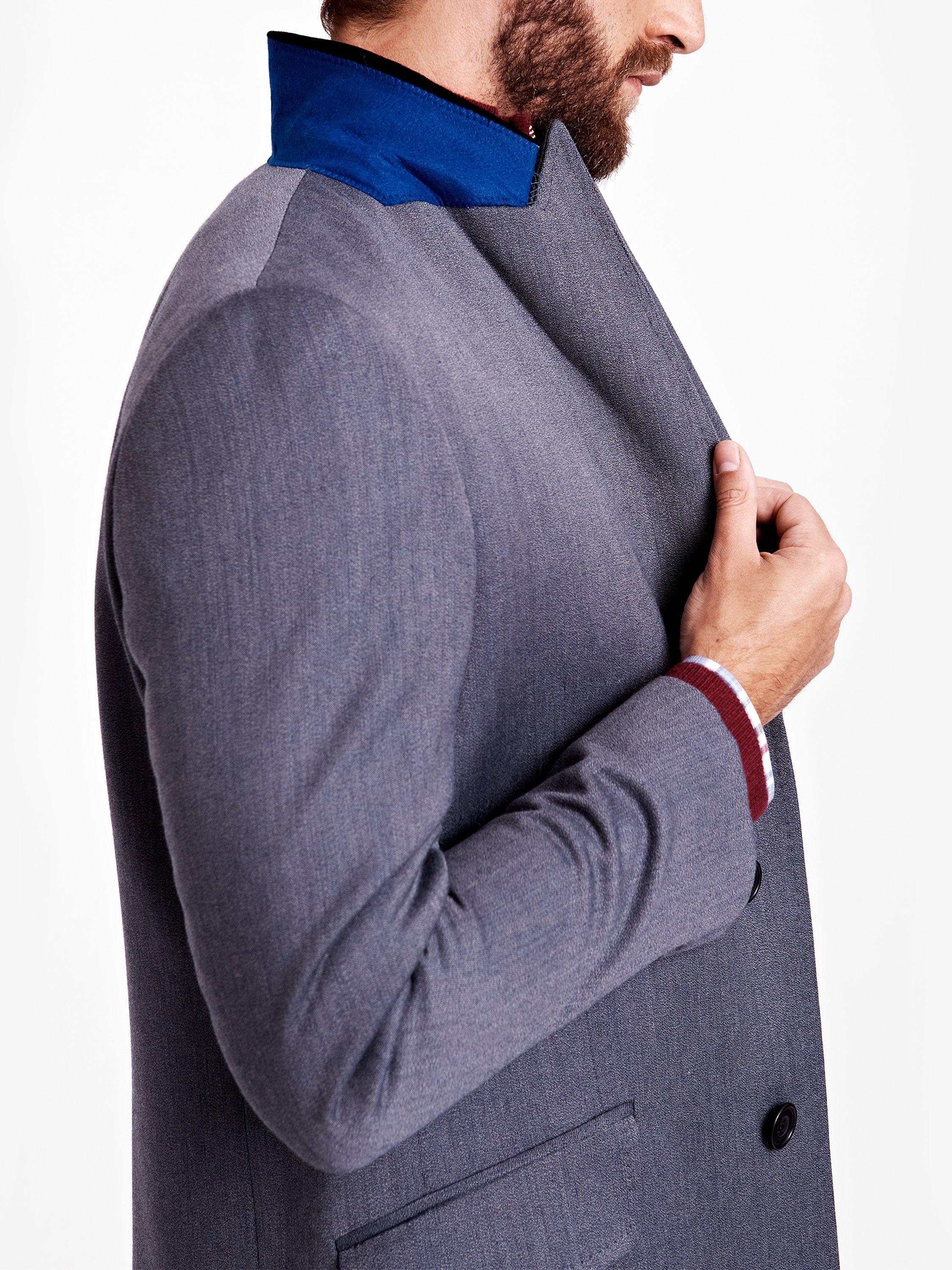 <[p> The coat is also fully lined with shirting trim details, features button fastening detail and is made from 100% wool.Pair with a crisp shirt, trousers and brogues for the most polished of professional looks.