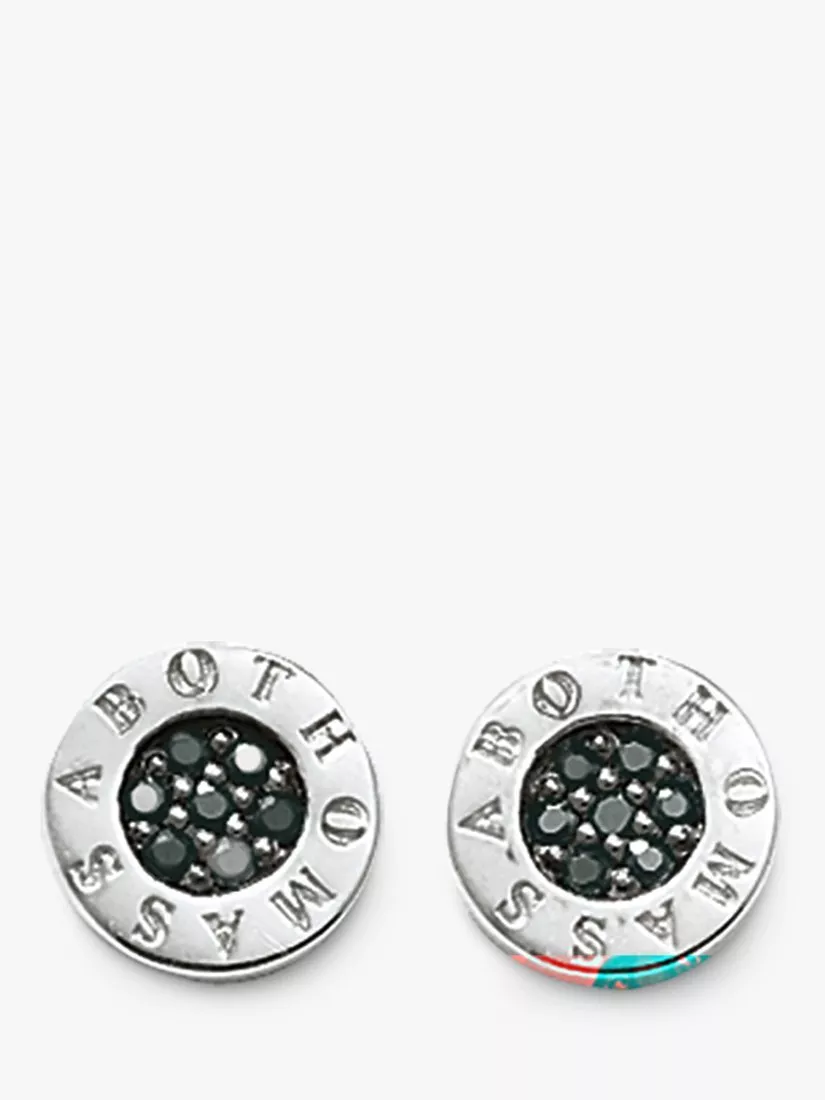 These THOMAS SABO classic earrings are made from 925 sterling silver are adorned in the centre with seven sparkling, black zirconia stones, surrounded by the THOMAS SABO logo.These timeless earrings are perfect with everyday wear, an office outfit or an elegant evening dress. These earrings are for pierced ears only.