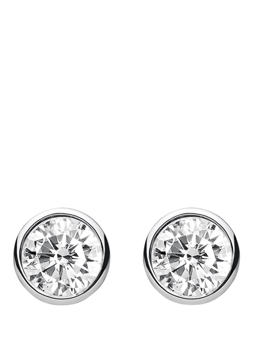 Delicate THOMAS SABO ear studs in 925 sterling silver, featuring a sparkling white zirconia centre stone elegantly framed by a classic bezel setting. A filigree, feminine design with push-back fastening. Suitable for pierced ears only.