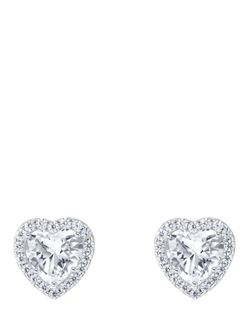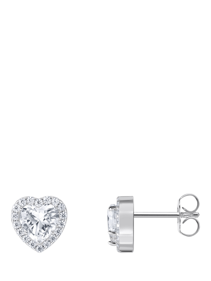 Set with sparkling cubic zirconia gemstones, these studs have a heart shape with a halo effect. For pierced ears only.