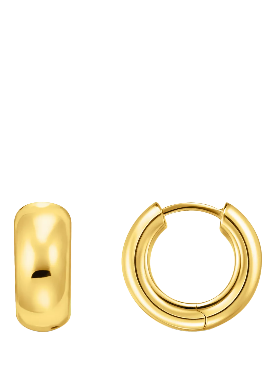 Small chunky THOMAS SABO hoop earrings with a bold 90s-inspired silhouette, perfect for day-to-night wear. Crafted from recycled 925 sterling silver with 18ct gold plating for a warm, modern finish. Suitable for pierced ears only. 0.067g.