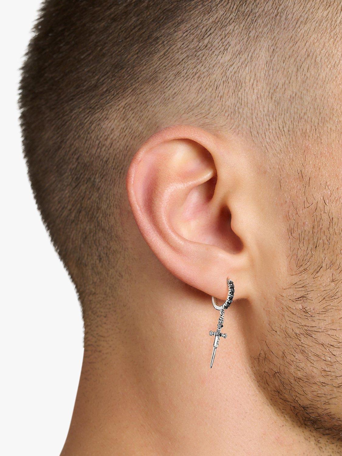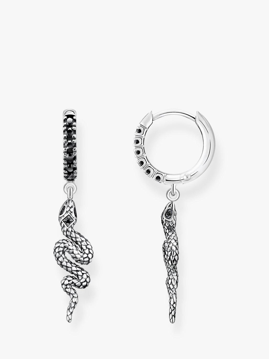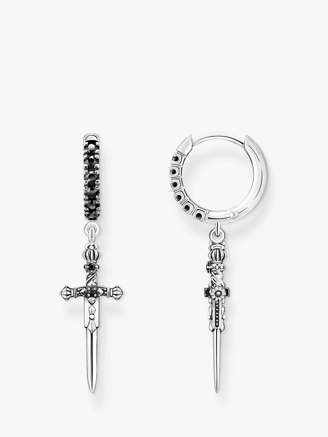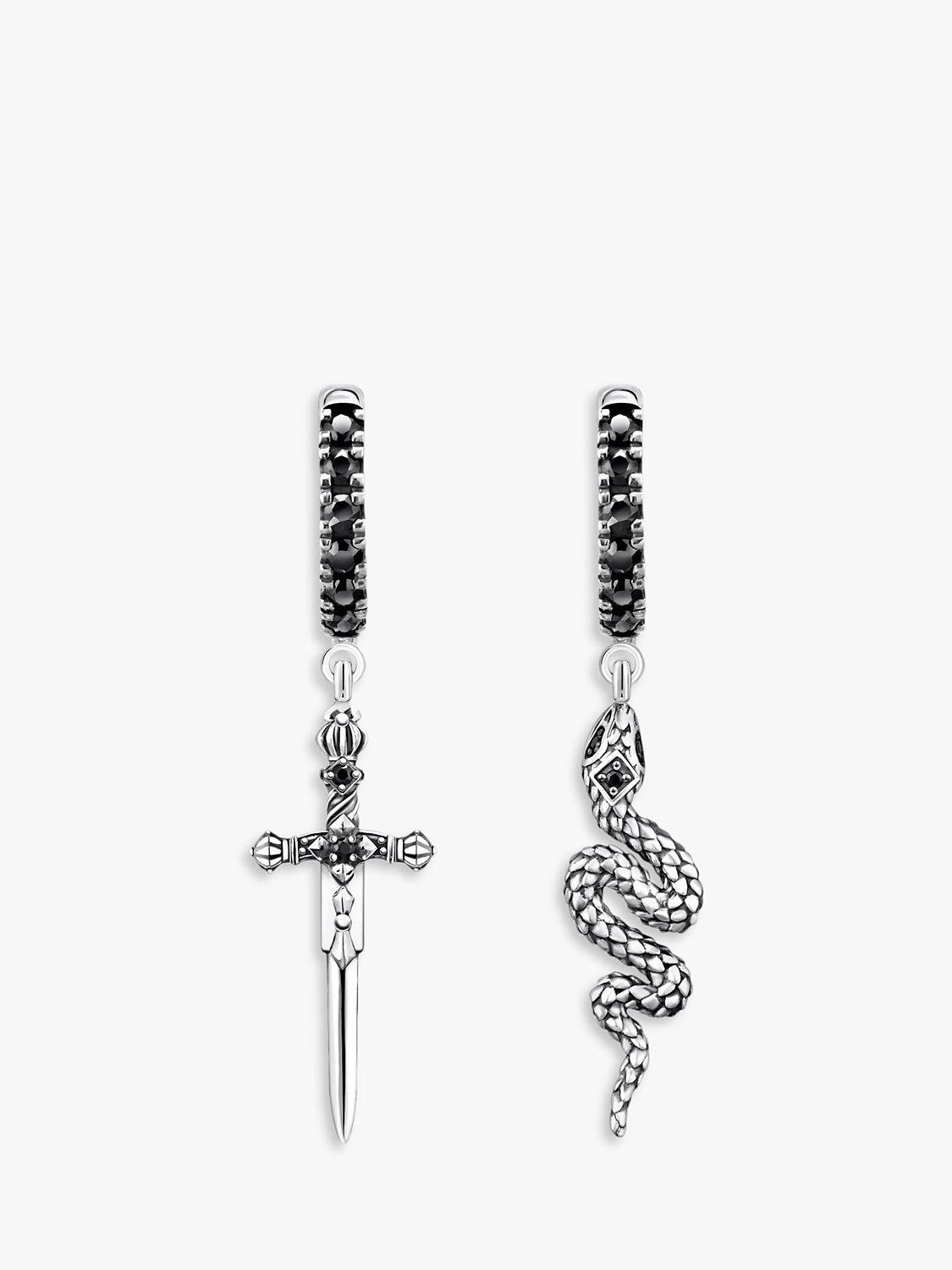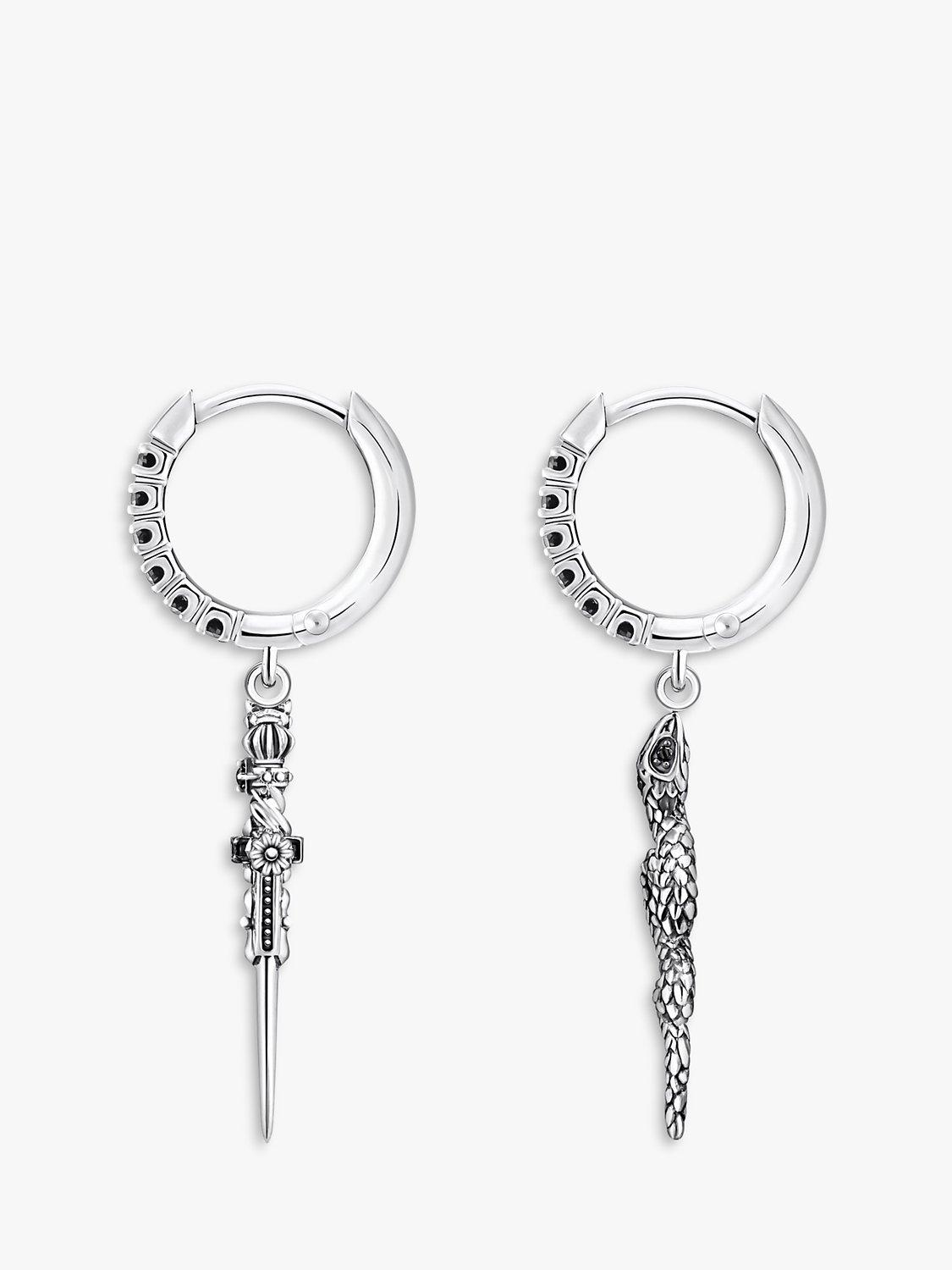 THOMAS SABOMen's Snake & Sword Drop Hoop Earrings, Silver