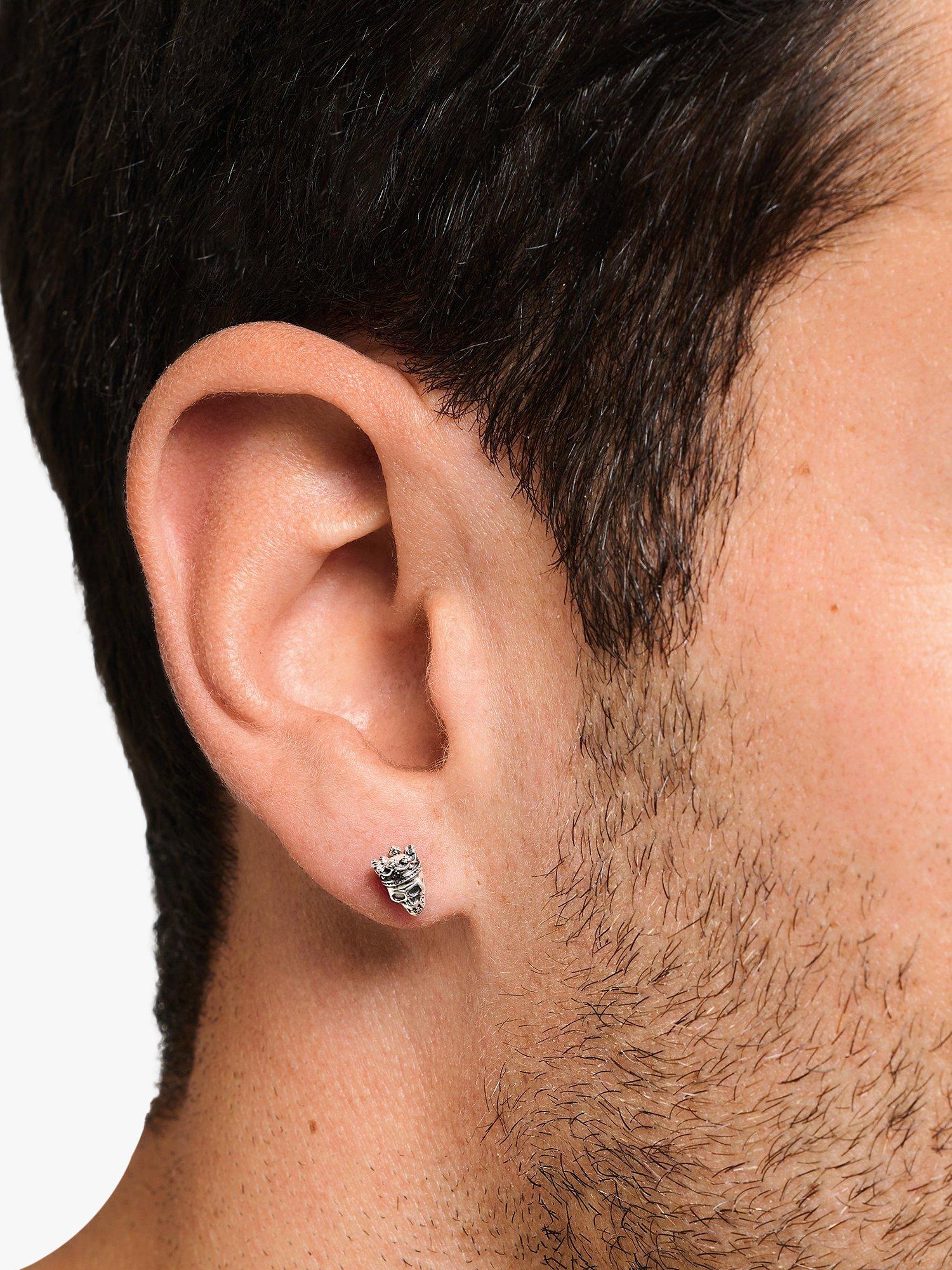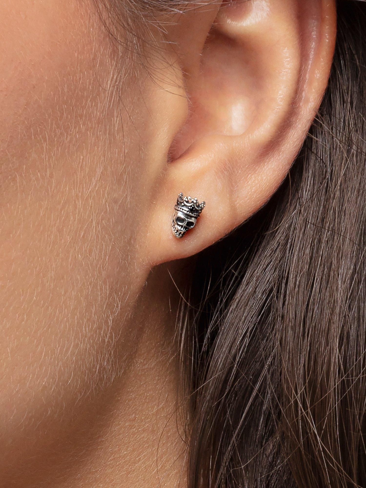 THOMAS SABOSkull Crown Stud Earring, Black/Silver