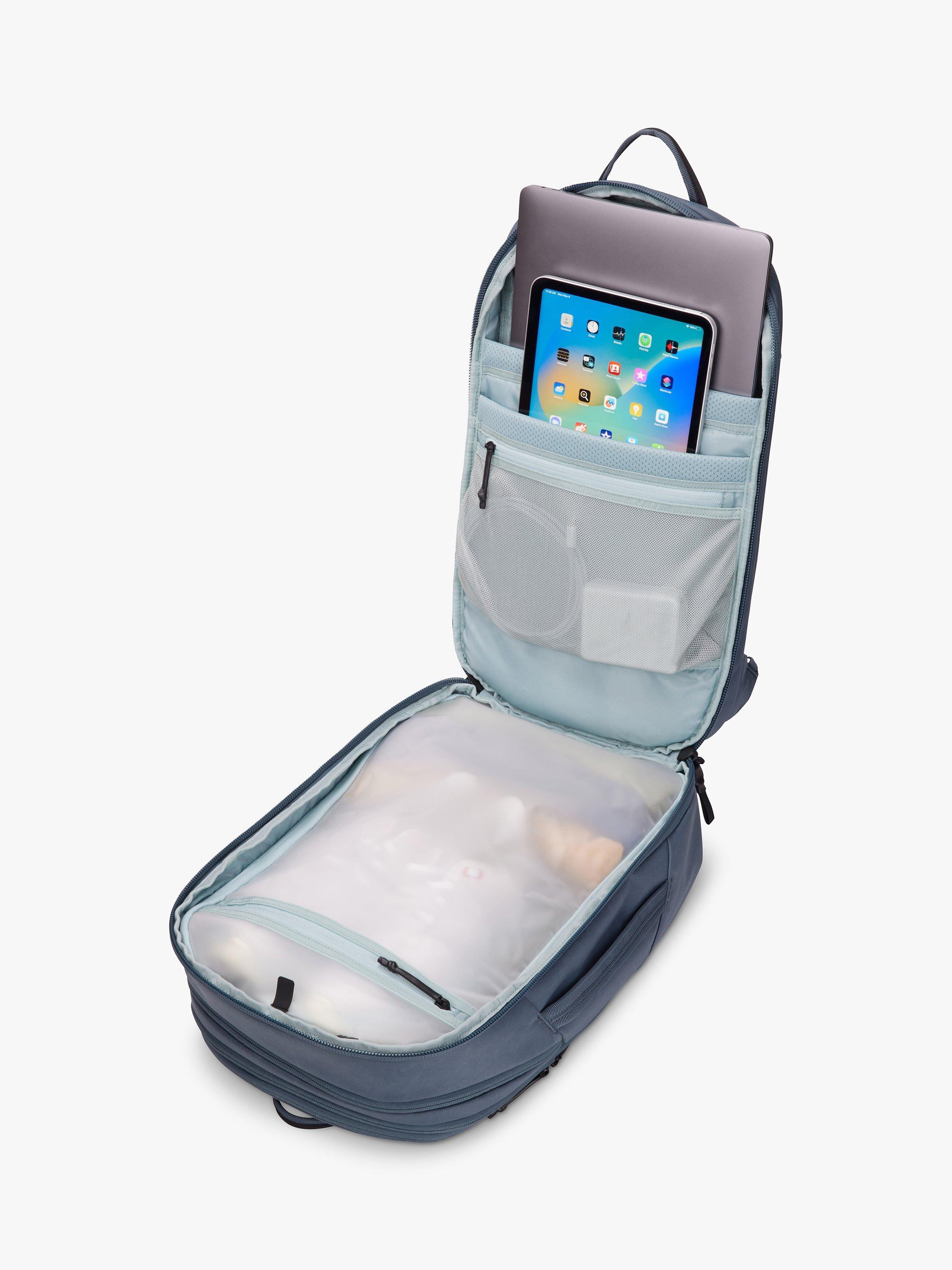 - Main compartment for bulky items with TPU divider which helps keep items separated during travel, is easy to clean, and tucks away when not in use, Padded storage protects a 15.6" PC/16" MacBook and 12.9" tablet