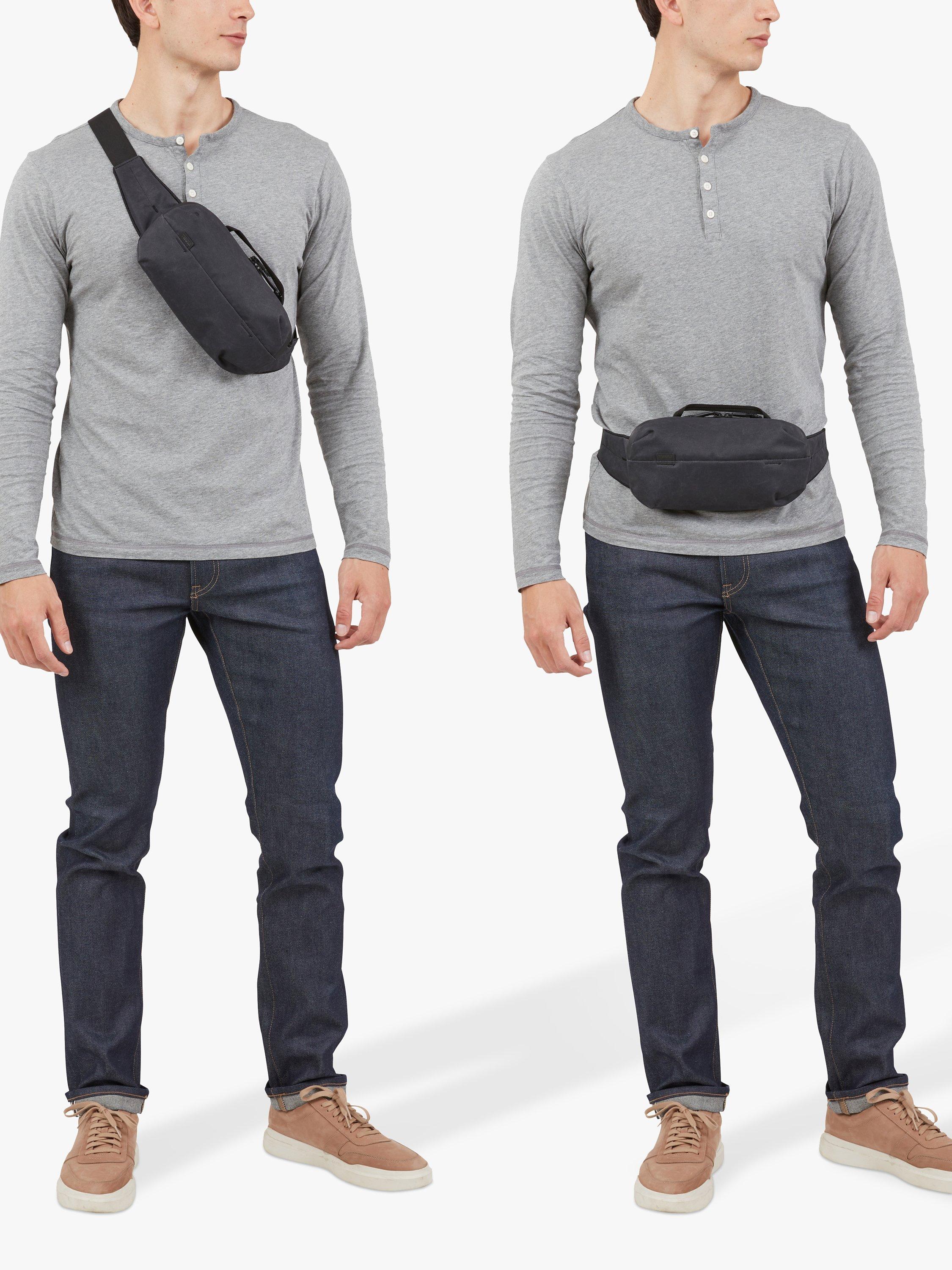 - Sling bag adjusts to being worn comfortably over the shoulder or as a hip pack