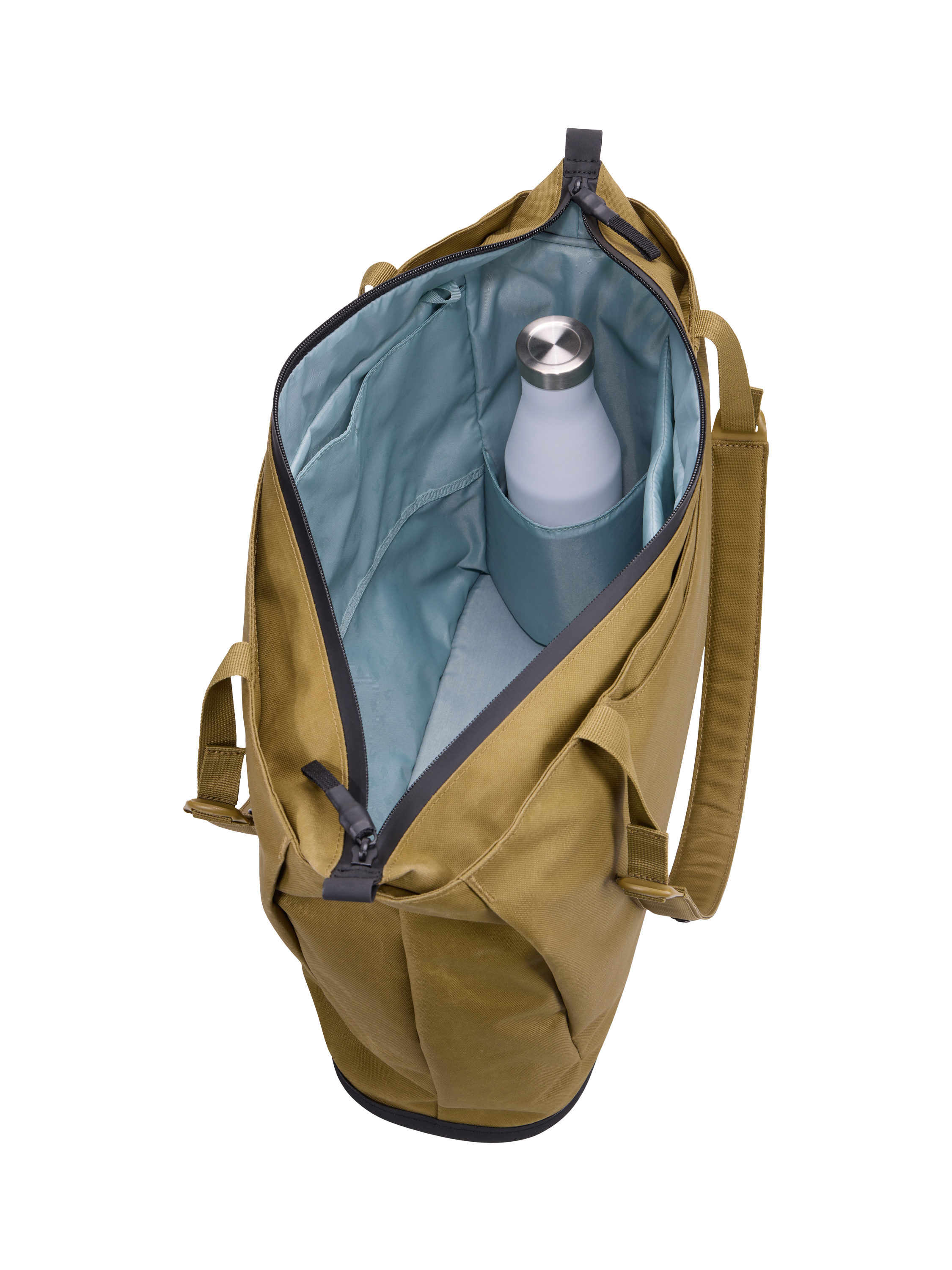 Bottle holder: Dedicated water bottle holder keeps your bottle upright inside the tote.