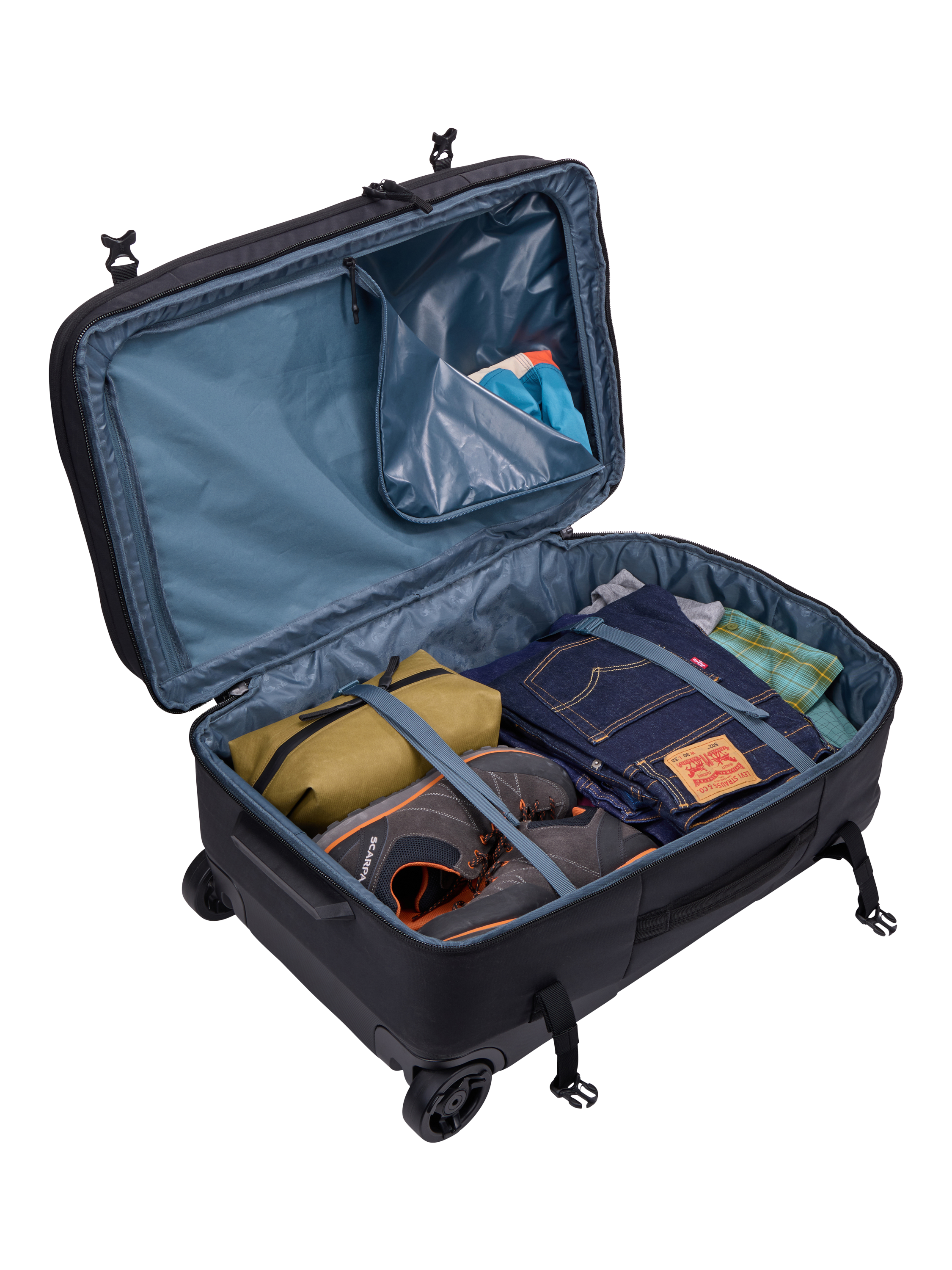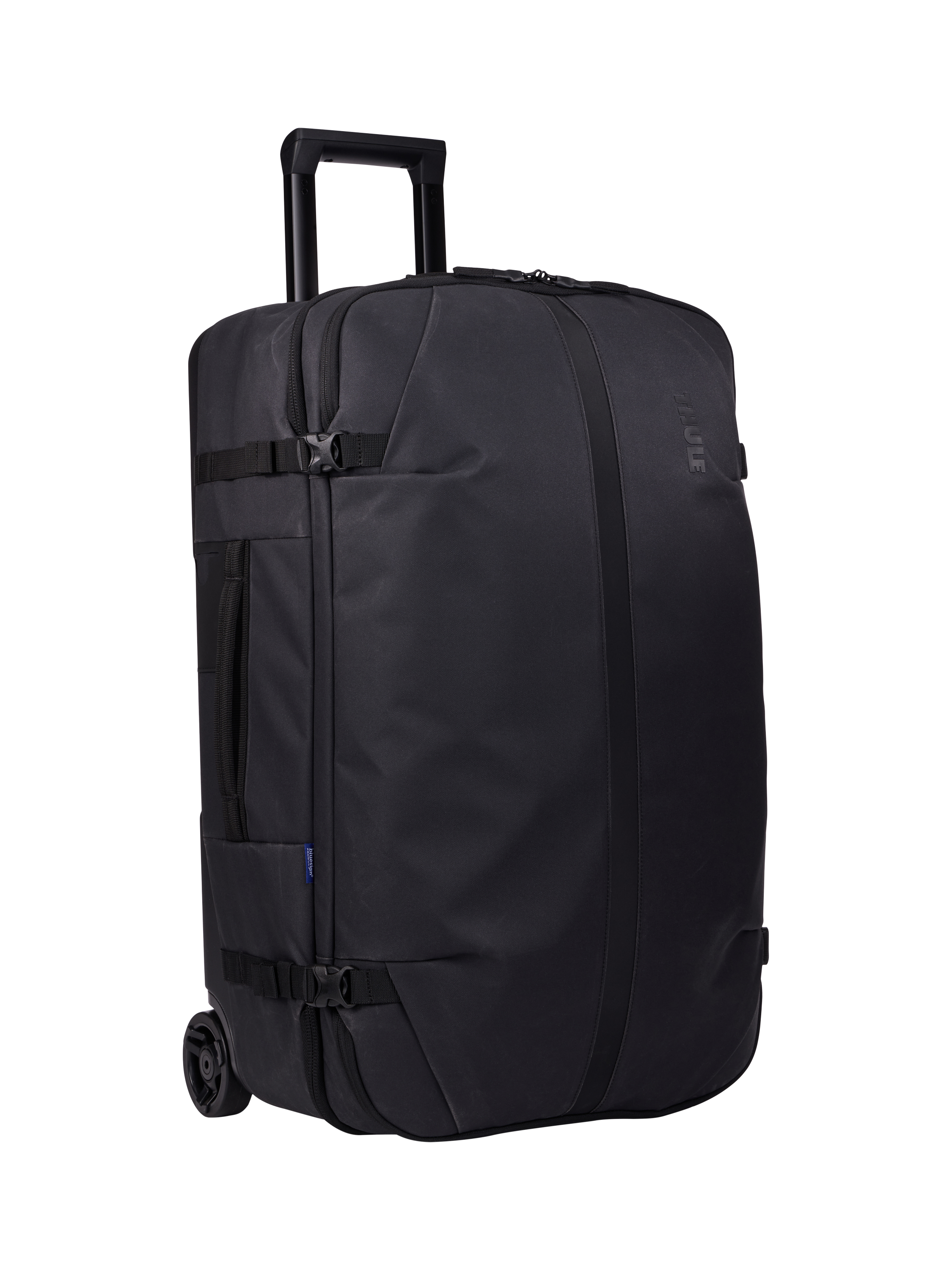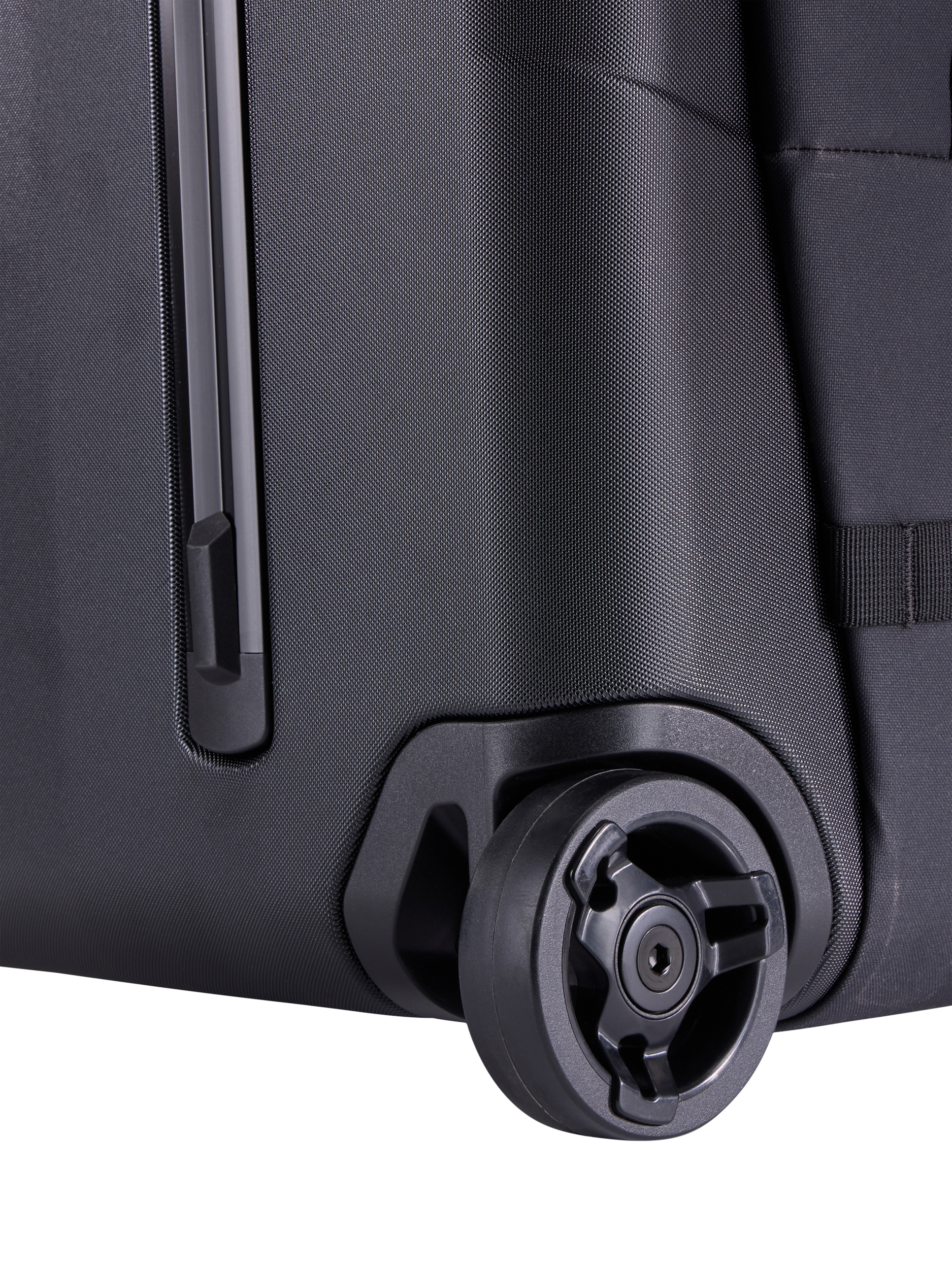 The Thule Aion wheeled duffel bag is a durable, water-resistant suitcase to take with you around the world and back. The large coated storage pocket allows you to store gym clothes or a bathing suit without moisture or dirt, while the oversized wheels glide with ease over any terrain.