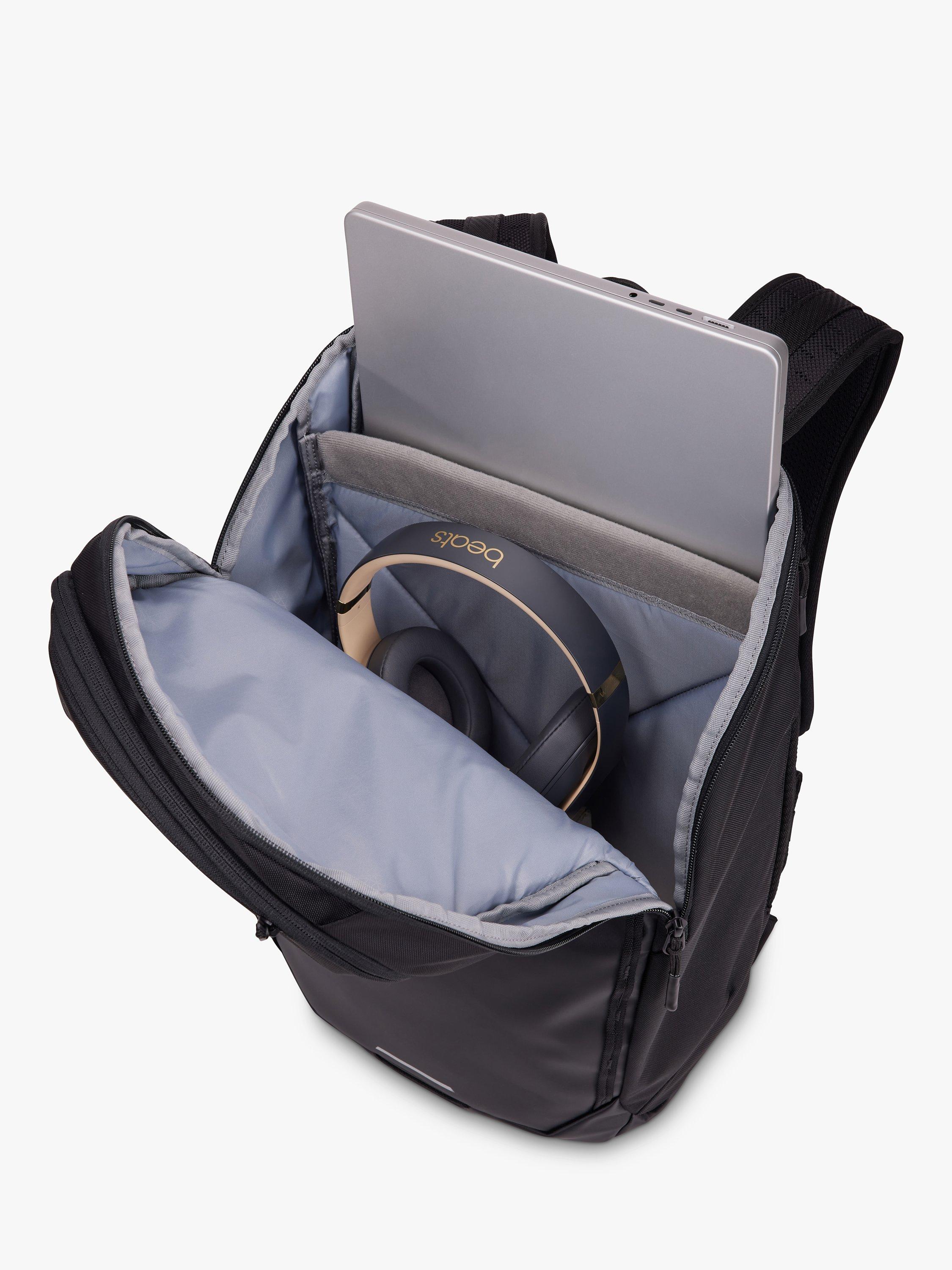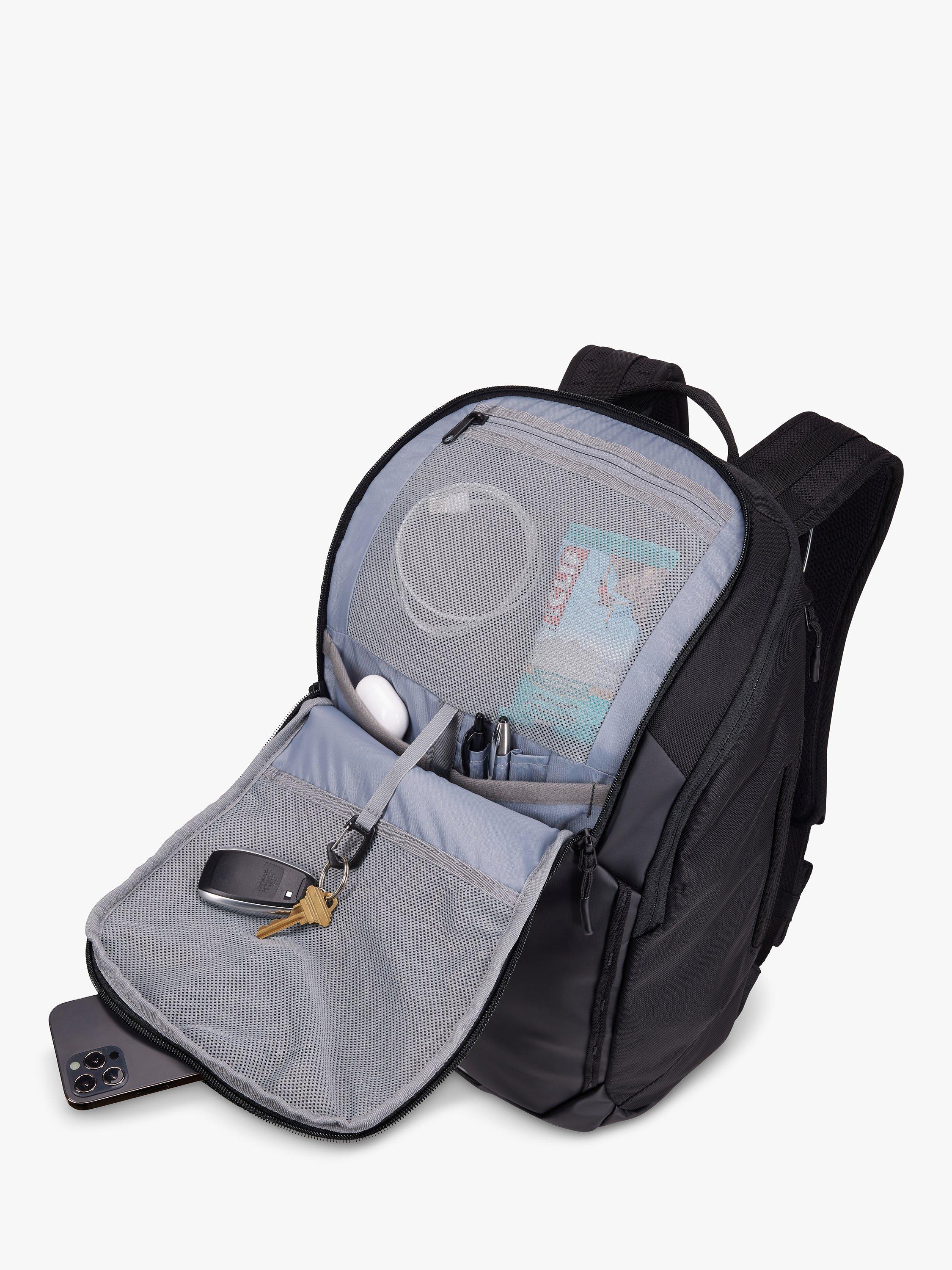 A durable, weather-resistant 26L laptop backpack for sport, travel, and everyday adventures. This backpack can fit laptops up to 16 inches and keeps them safe with a thickly padded sleeve and a weather-resistant front panel and base. Keep accessories secure and easy to locate in the organizational panel with a mesh pocket, slip pockets, and bulk storage, or quickly access smaller items in the top zippered pocket. You can attach additional gear to your bag with a carabiner and the integrated daisy chains and stay visible and safe with the dedicated bike light attachment loop.