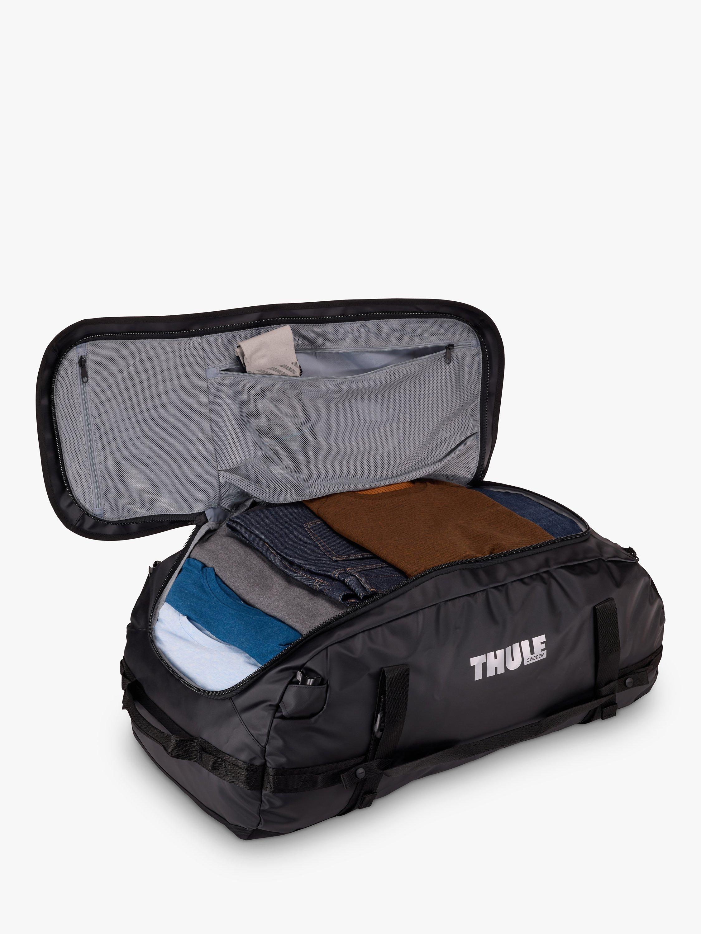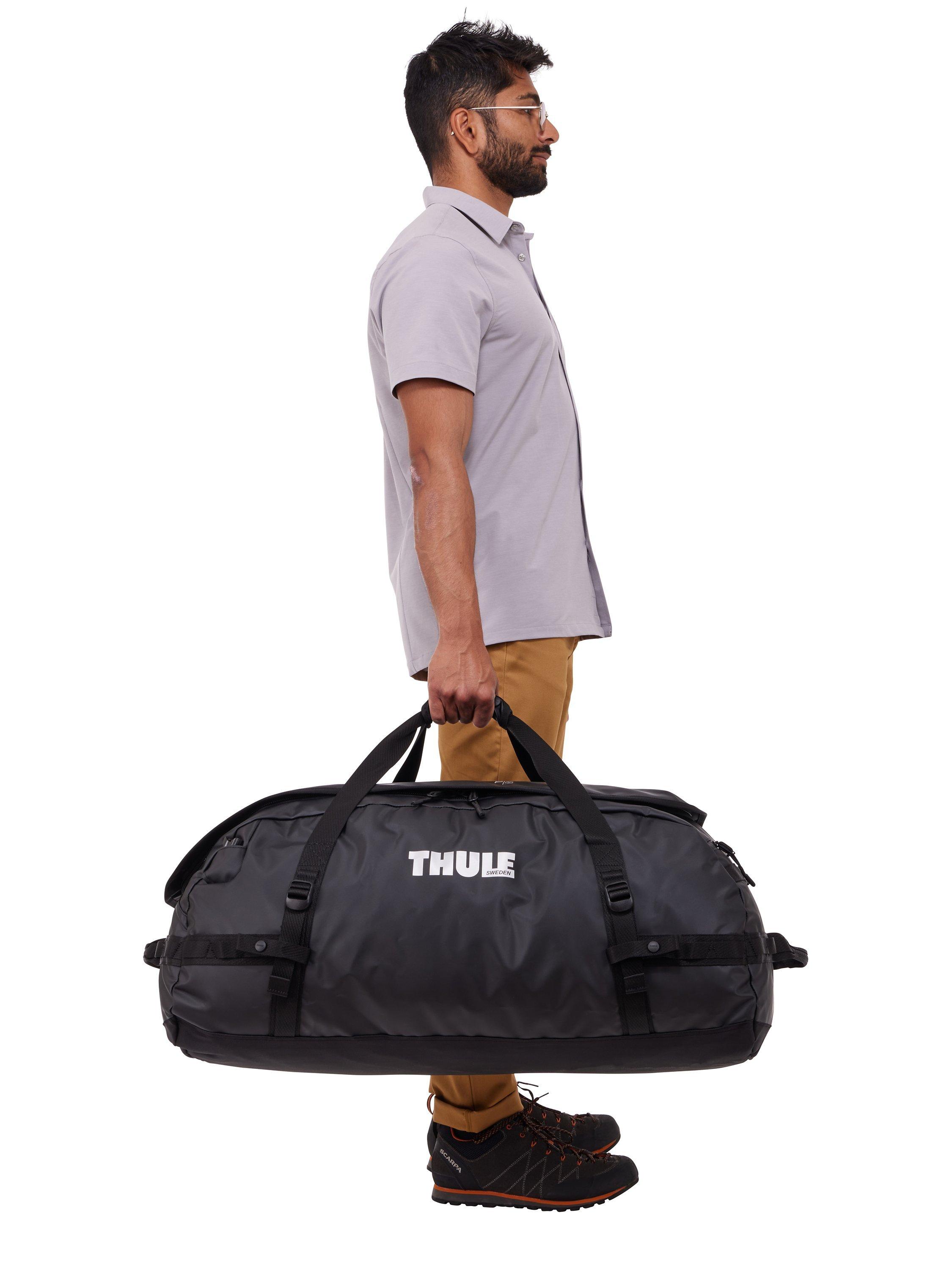 Thule Chasm is a rough-and-ready duffel bag that can be thrown into your trunk or roof box, perfect for short trips or multi-day adventures. It protects the contents from the elements with durable, weather-resistant tarpaulin fabric and is easy to pack with its wide mouth opening and spacious interior. Designed to be versatile, it easily converts from a duffel to a backpack with straps that tuck away when not in use, and the padded bottom protects your valuables from crashing around when you put your bag down. It even comes with a carry case that provides convenient storage and can be used as an accessory pouch inside the bag.