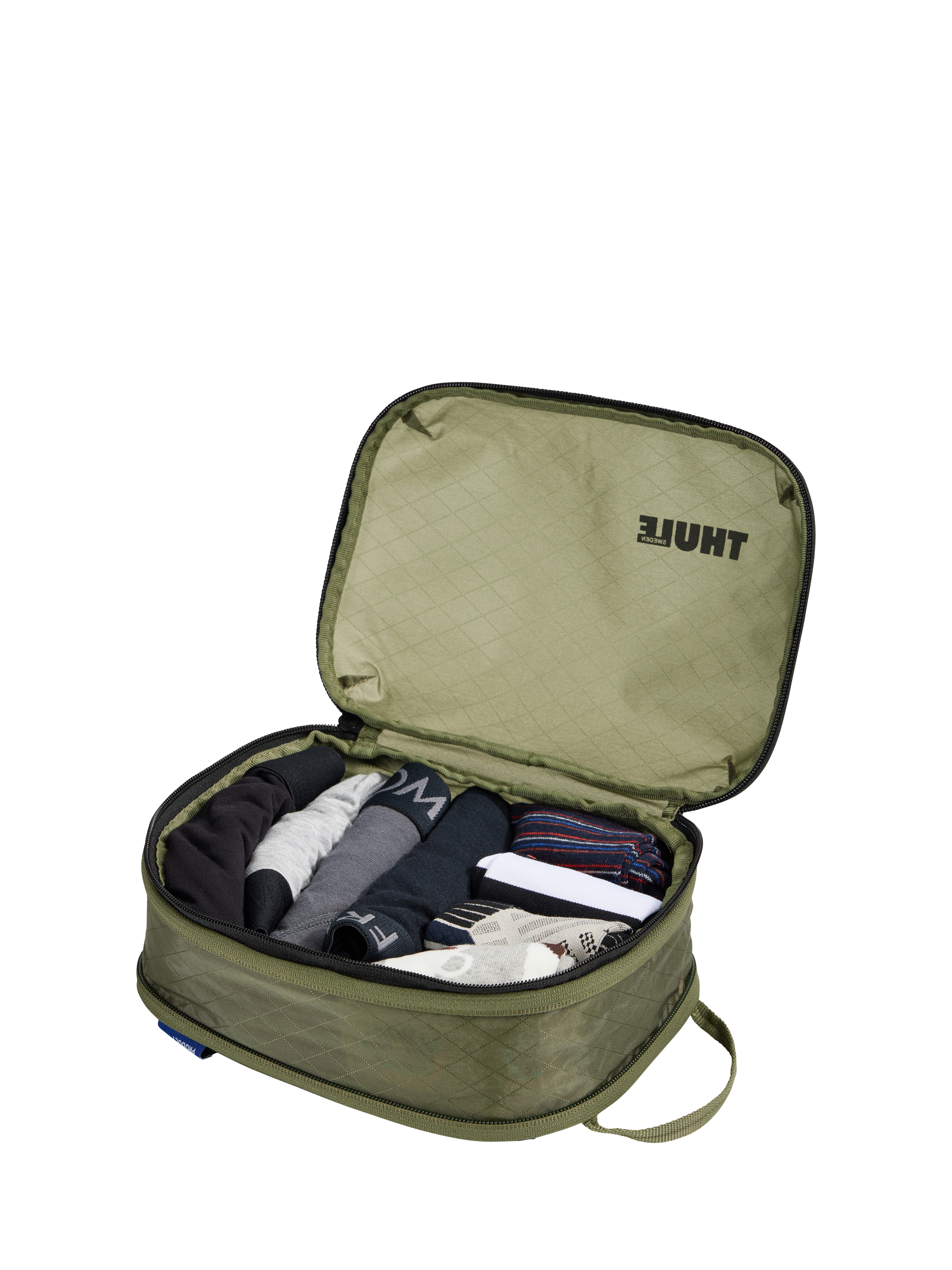 This set of durable, small and medium packing cubes will help maximise packing space and keep you organised. Includes one small and one medium Thule Compression Packing Cube, with a durable compression zipper that eliminates excess air between clothes. Made from semi-transparent fabric to see what is inside while still keeping belongings discreet. The small size is ideal for socks, underwear and shirts, while medium size is great for jeans, leggings and shirts. The webbing handle allows you to easily grab and hang the cube while traveling.