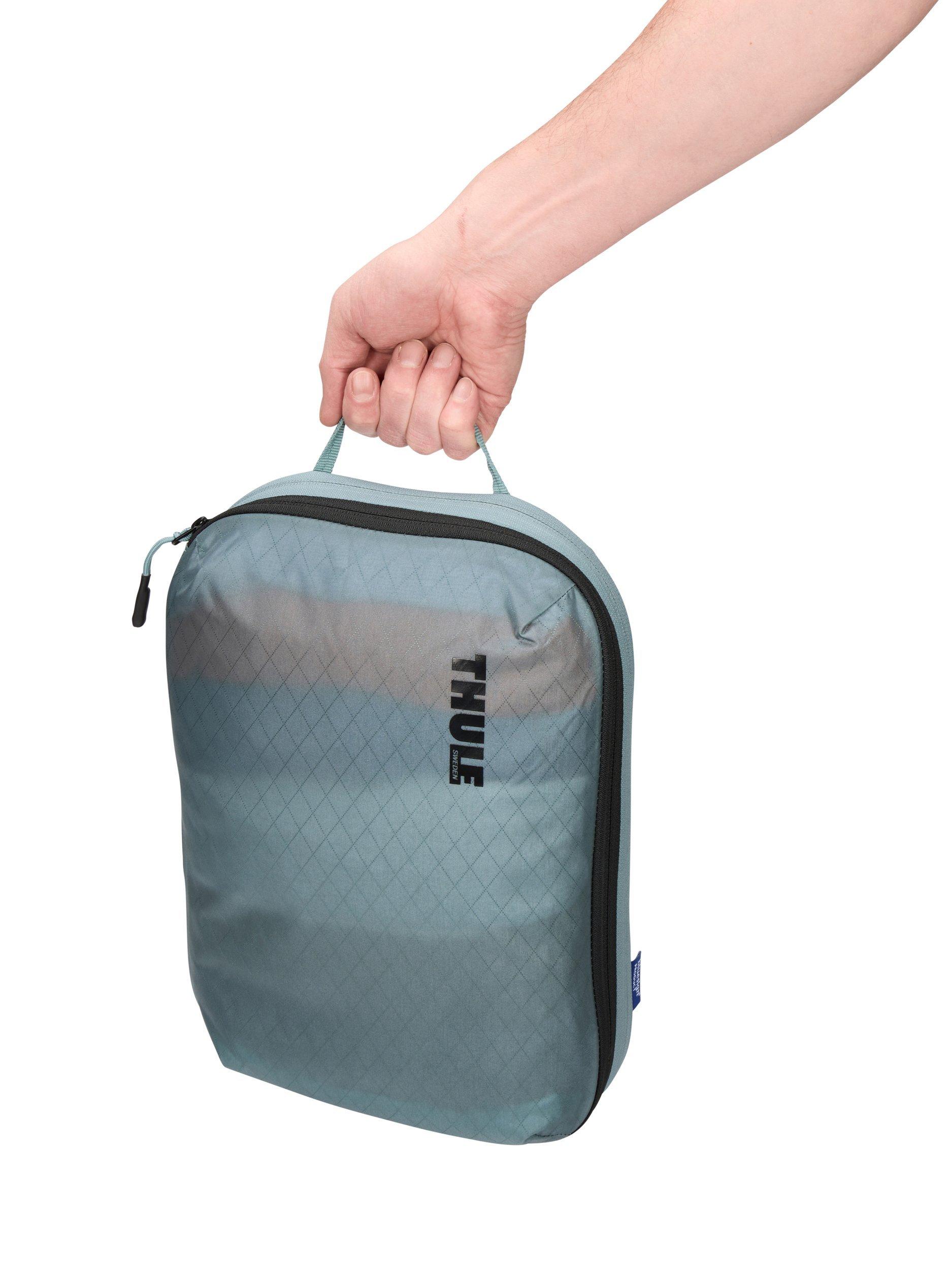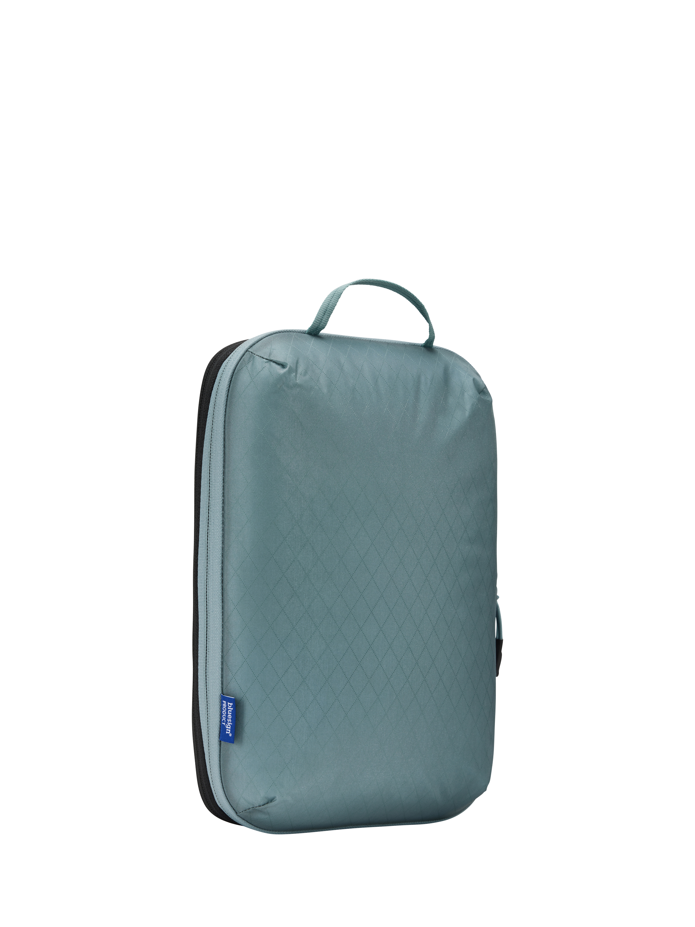 Pack smarter and stay organized with a semitransparent packing cube that expands and compresses to maximize packing space.