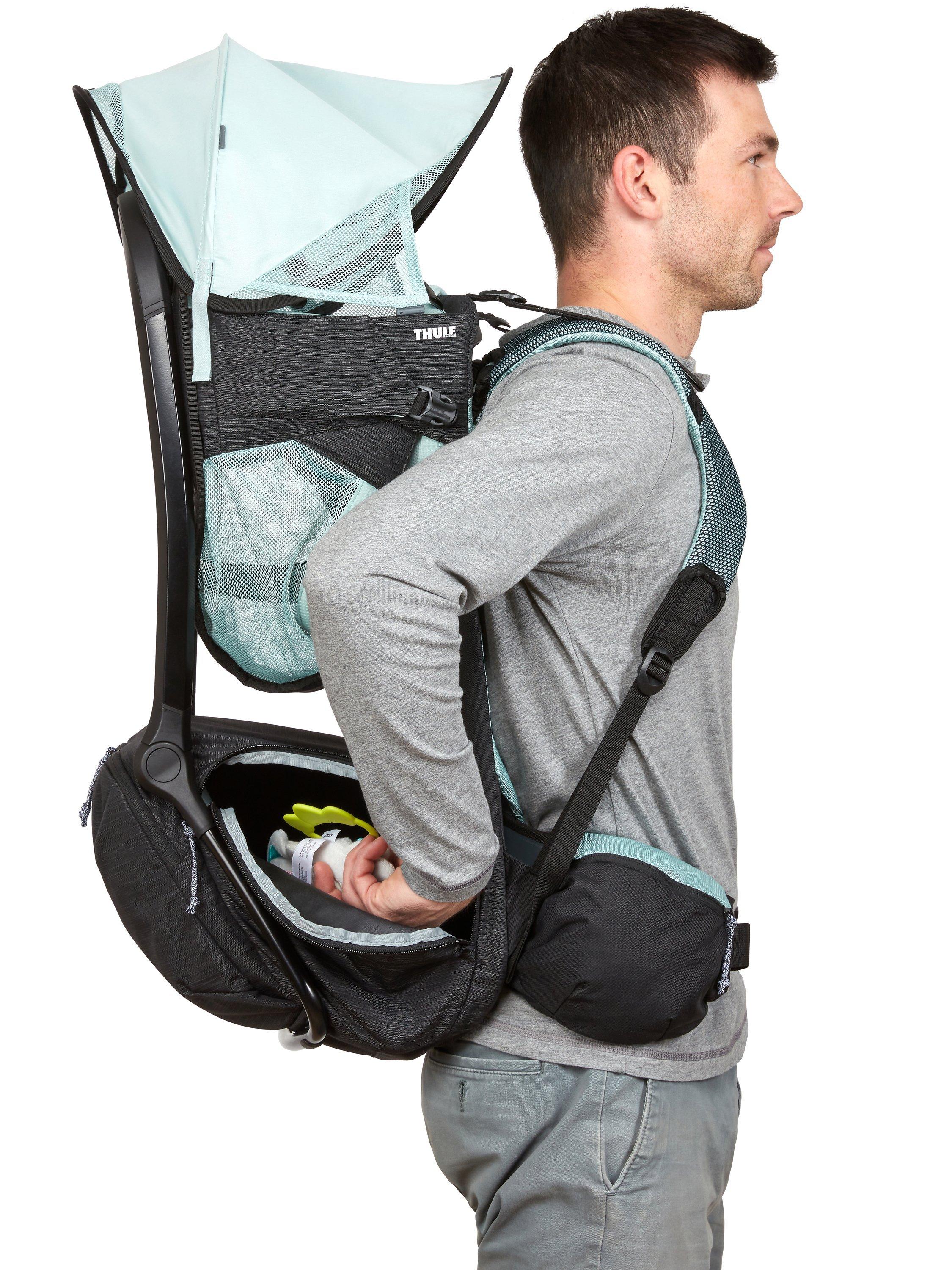 The ErgoRide child seat keeps your child comfortable and cool with ample underleg support and a ventilated back panel and sitting area. It comes with an easily deployable UPF 50 sunshade that protects your child and keeps them cool. It also has a fully adjustable torso and hip belt that provide a perfect fit, a comfortable carry and a quick transition from parent to parent. The fully ventilated back panel keeps parents comfortable and cool. There's even easy storage thanks to the 22L gear compartment that can be easily accessed through convenient side zippers while wearing the pack.