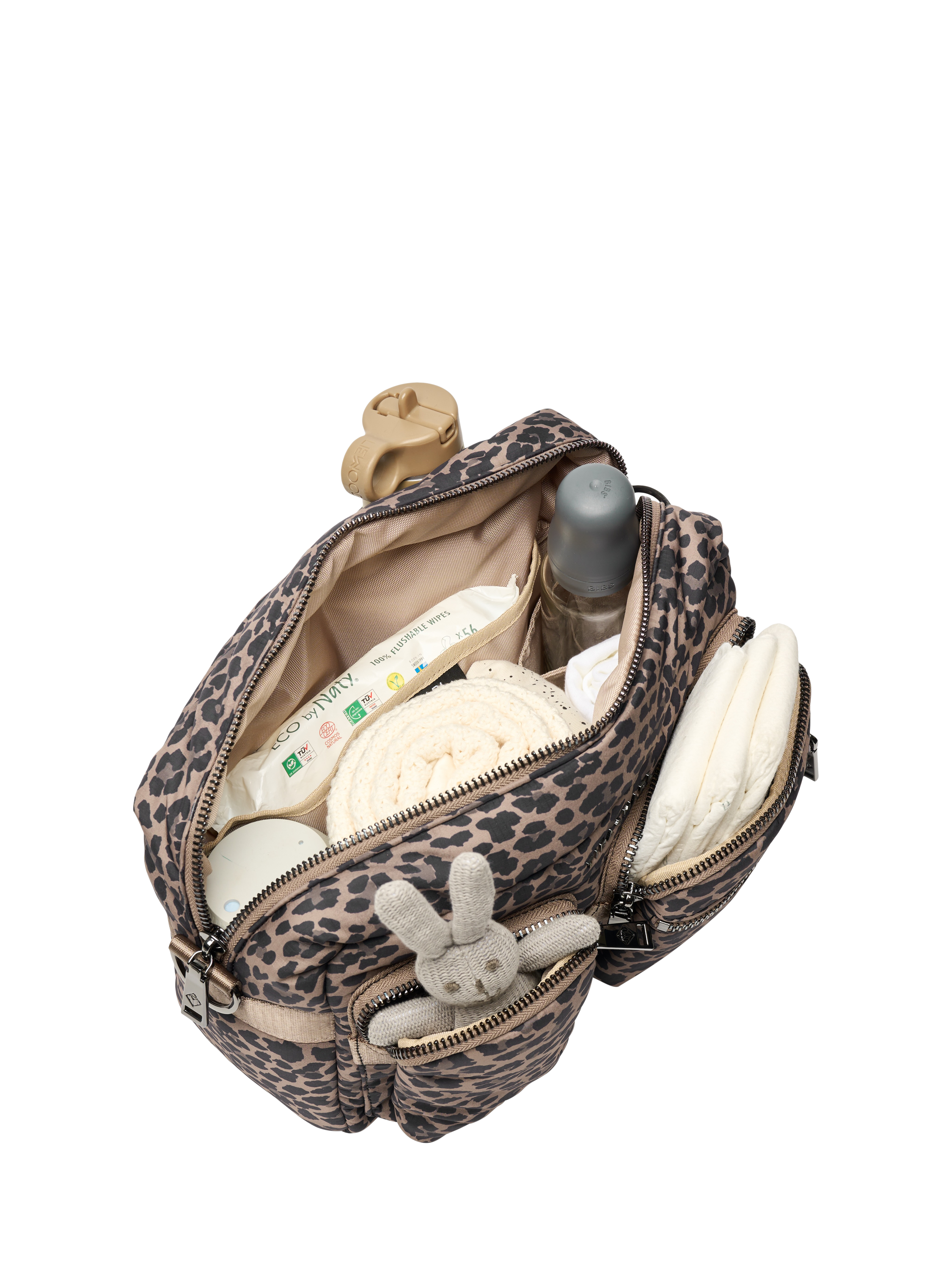 Spacious enough for your baby essentials and perfect for when you want to travel lighter. Axel has been constructed from water-resistant ripstop and set back to slick gunmetal hardware. This hybrid style can be easily converted from bag to buggy organiser with its detachable branded woven cross-body strap and detachable riptape stroller straps. Featuring three exterior zip pockets and two slip pockets on the reverse, large enough to carry bottles, plus a highly organised interior that includes an insulated bottle sleeve.