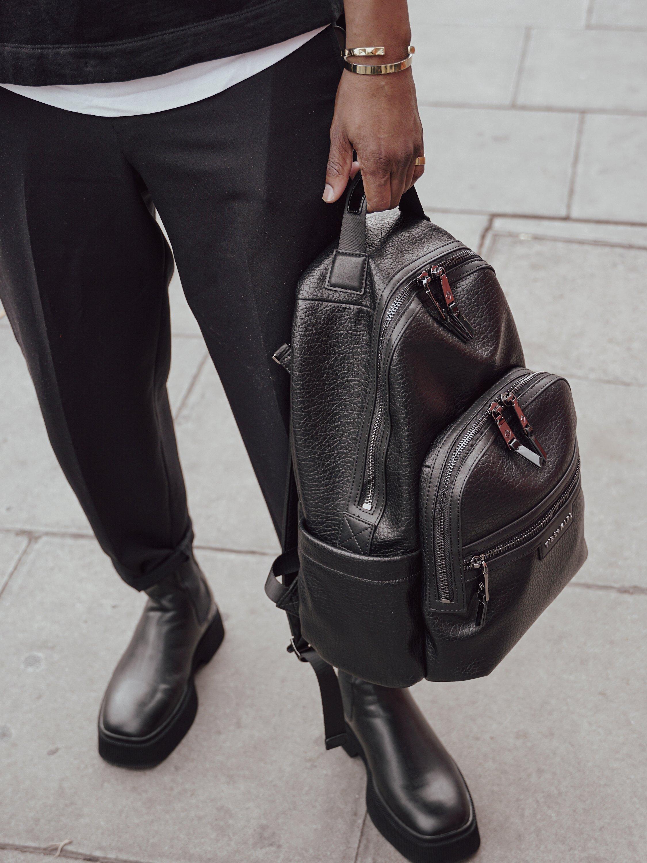 Crafted from recycled vegan leather and with premium plated hardware, this best-selling backpack is large enough to fit most laptops and its functional design details work hard for you in any environment, be it playground, office or street.