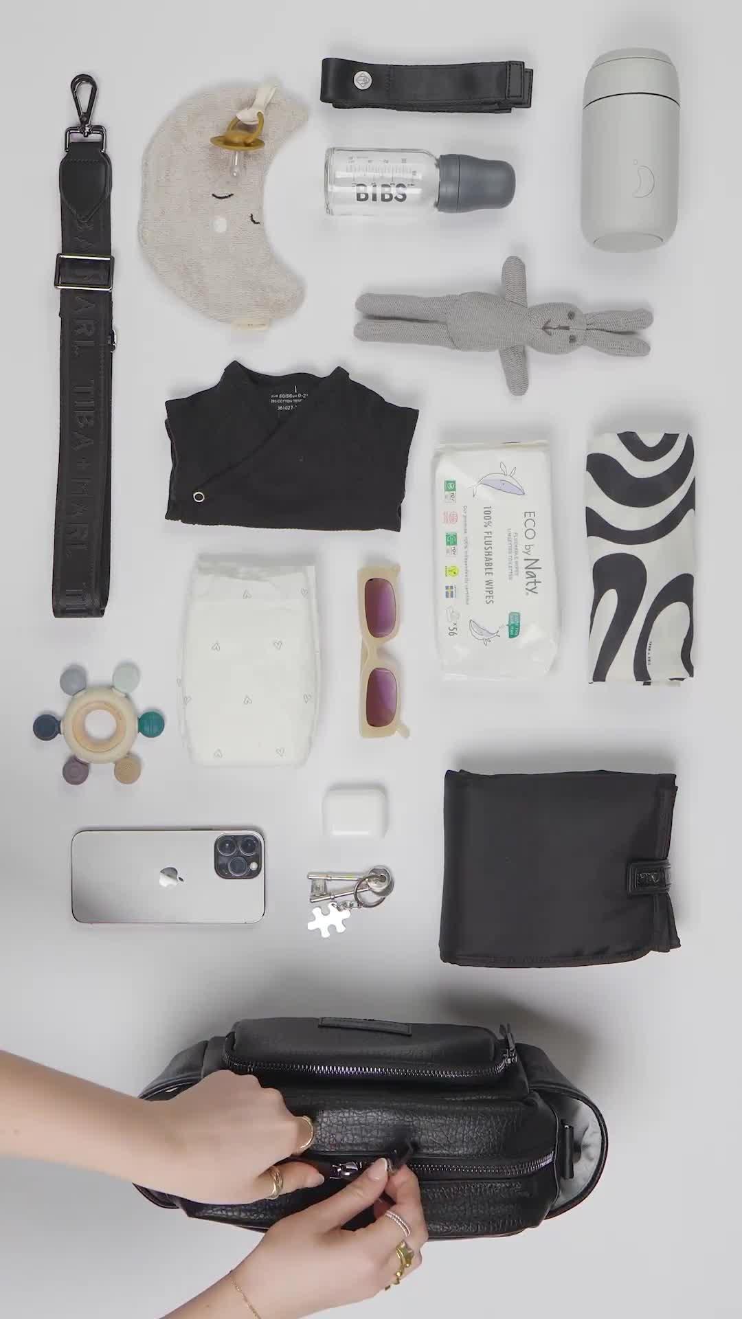 One of the most useful travel accessories for parents, the stroller organiser, gets given a Tiba+Marl make-over. As you would expect, the Inka reflects the brands take on unisex, functional style. Crafted in recycled vegan leather and set back to sleek gunmetal bespoke hardware, Inka provides easy-reach storage for all your baby and parental needs. In addition to integrated stroller straps, this handy organiser also includes a detachable branded woven cross-body strap allowing you to wear your Inka as a cross-body micro changing bag. In line with our commitment to sustainability, we use recycled materials made from post consumer plastic waste and recycled yarn.
