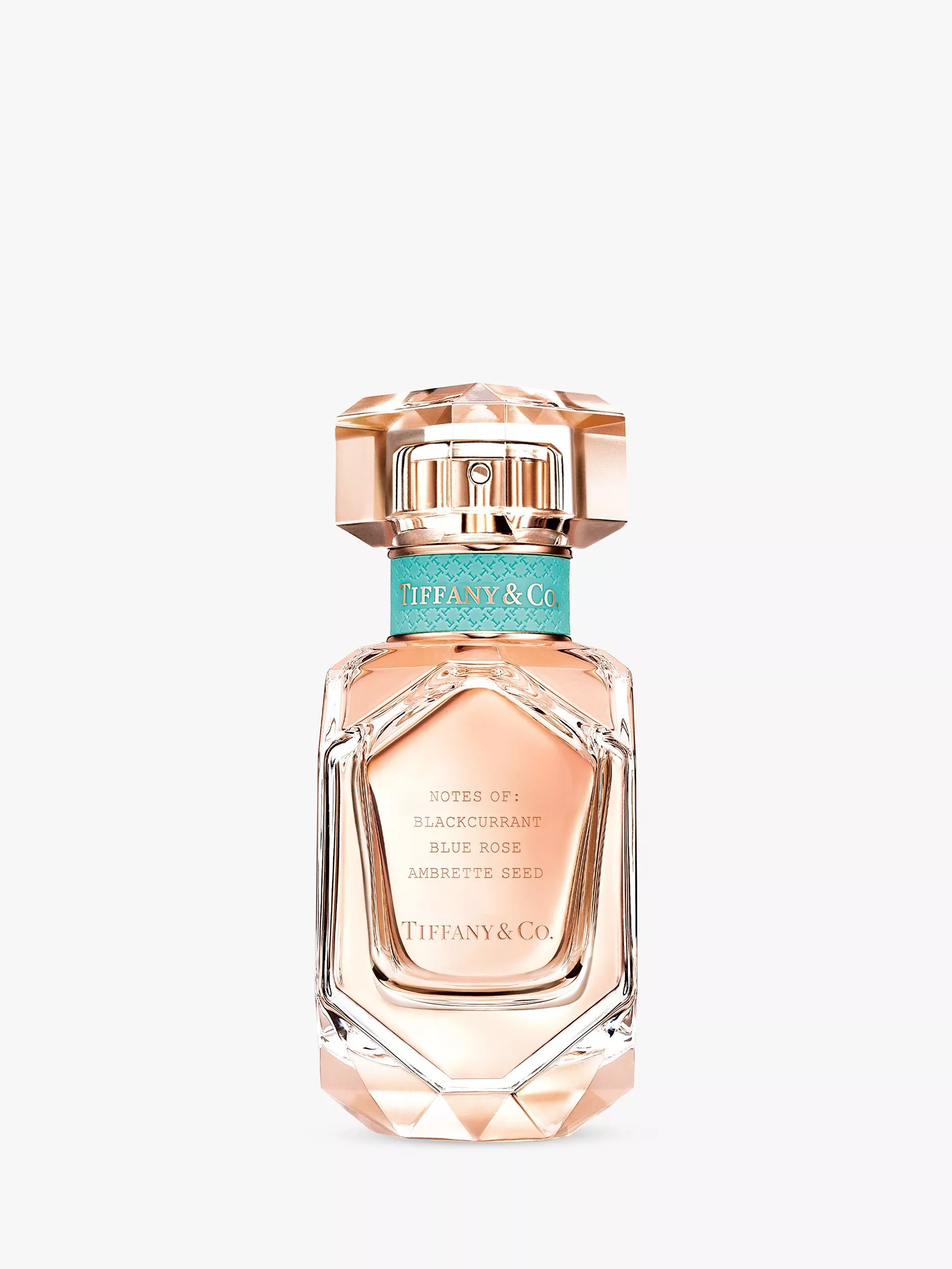 Vibrant and magnetic, Tiffany & Co. Rose Gold perfume for her is the innovative creation of master perfumer, Jerome Epinette of Robertet. The fragrance opens with a fruity blackcurrant paired with pink pepper and lychee fruit for a sparkling, playful top note. At the heart of the fragrance is the blue rose accord, a unique hybrid of Japanese rose that nods to Tiffany’s signature shade and lends a delicate floral scent to the fragrance. For a warm finish, ambrette seed blend with deep musk and iris at the base.
