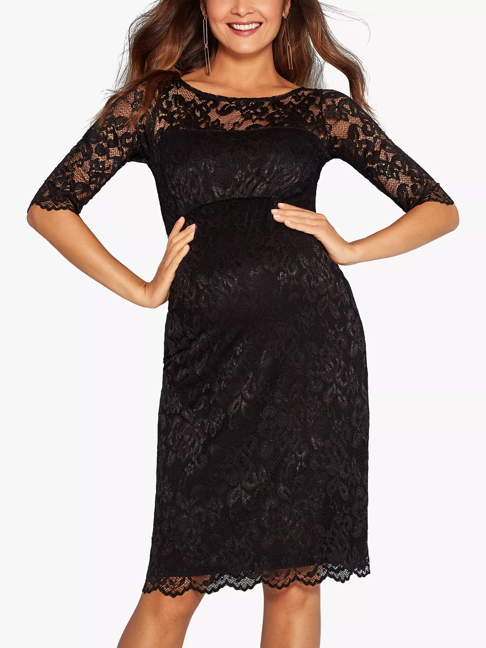 This Amelia maternity dress is a Tiffany Rose signature style. In soft lace with a lustrous shimmer, it's incredibly comfortable and flattering with gentle give in the body balanced with elegant boat neck and ¾ sleeves.