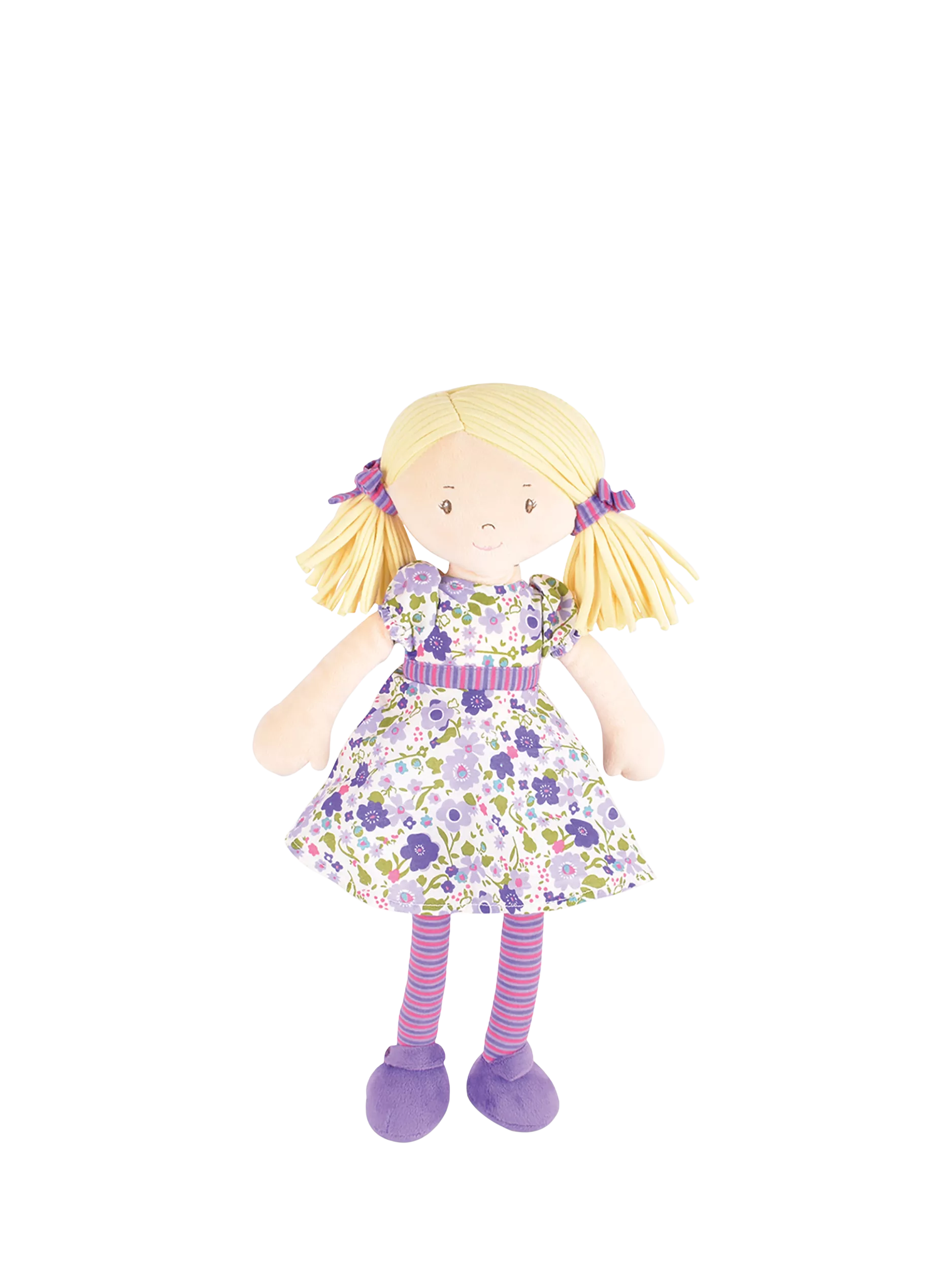 With her soft, squishy body made from 100% cotton jersey and sweet embroidered face, Peggy is perfect for snuggling or playing all day long. Wherever you go, she's there to bring smiles, comfort, and a whole lot of fun!