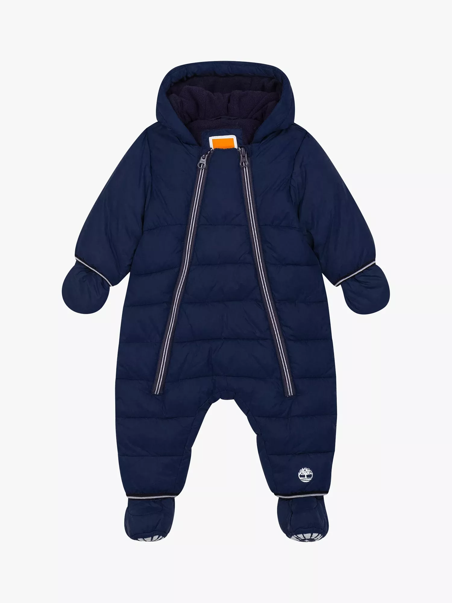 Keep baby snug on the chilliest of days with this all-in-one from Timberland. Made in water-repellent fabric with a polar fleece lining, the double zip fastener and removable mittens and booties with snaps offer easy practicality.