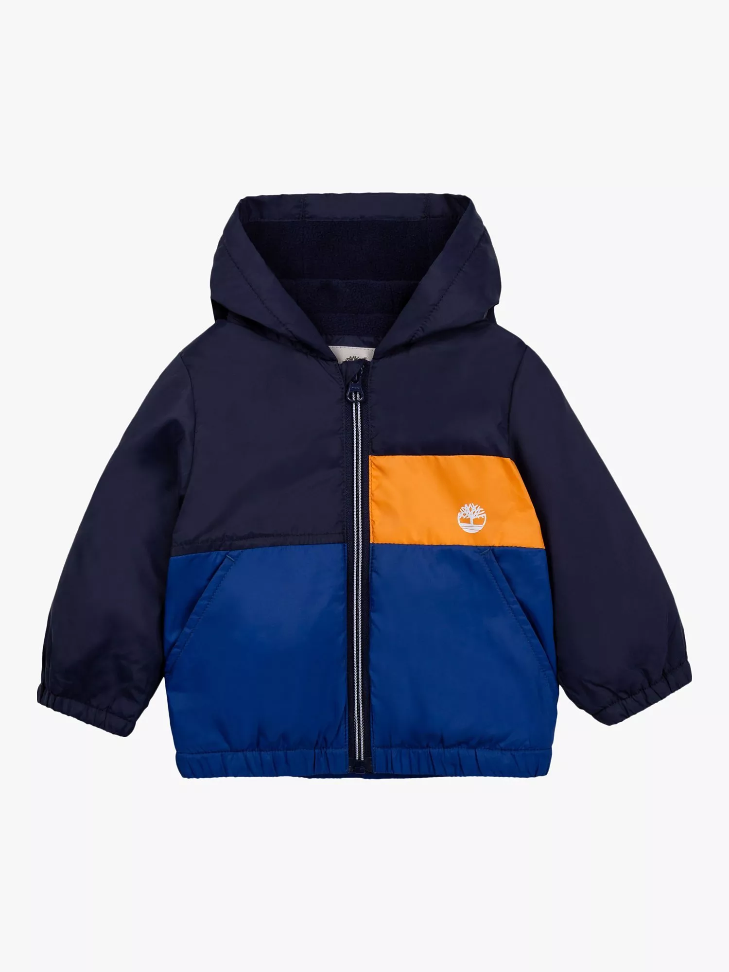 In a durable windbreaker style that's also water repellent, this polar fleece lined jacket comes with a fuss-free zip fastening with handy pockets at the side. In a contemporary colour block pattern, it comes with a back pack for folding away.