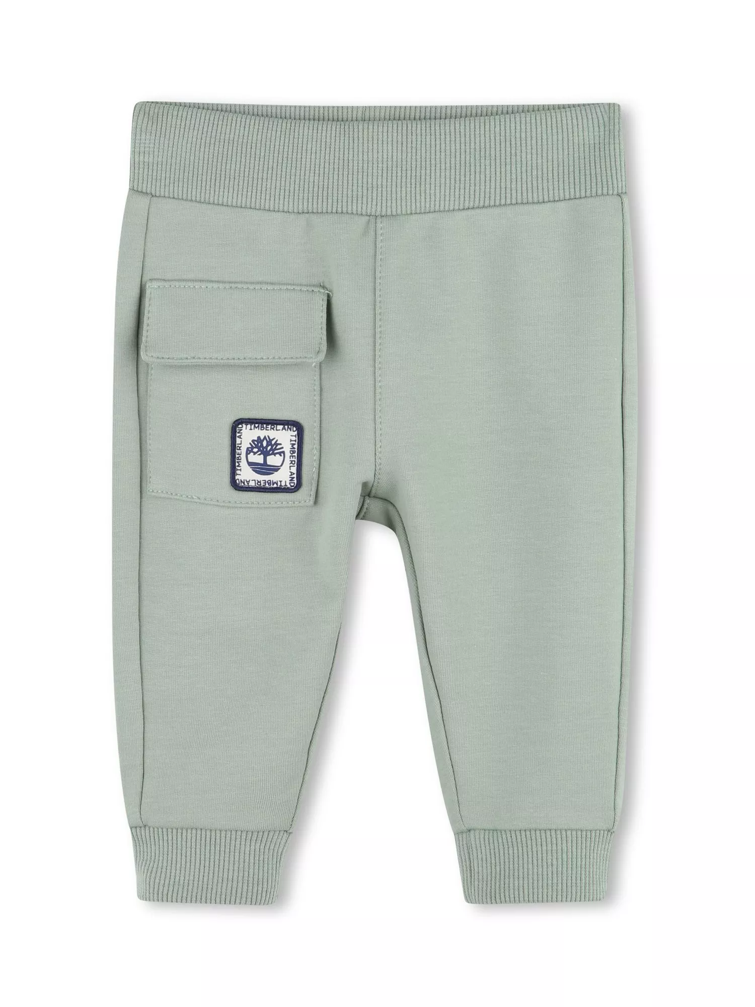 French terry jogging bottoms with a front pocket with a flap and printed label, elasticated waist.