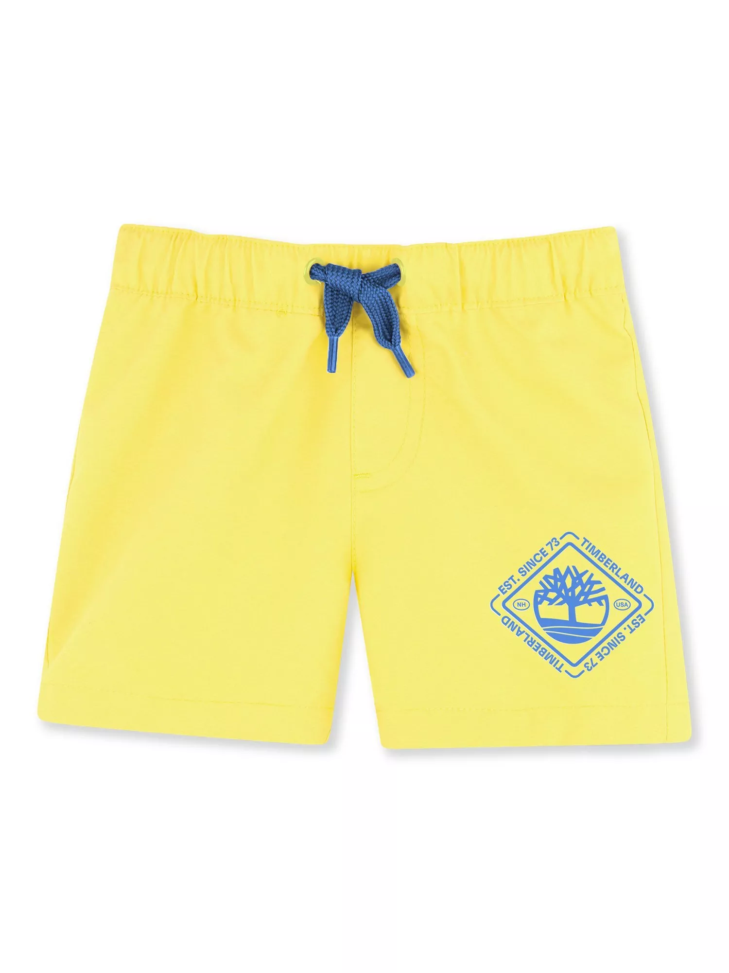 Swim shorts by Timberland, designed with an elasticated drawstring waist and printed logo on the front.