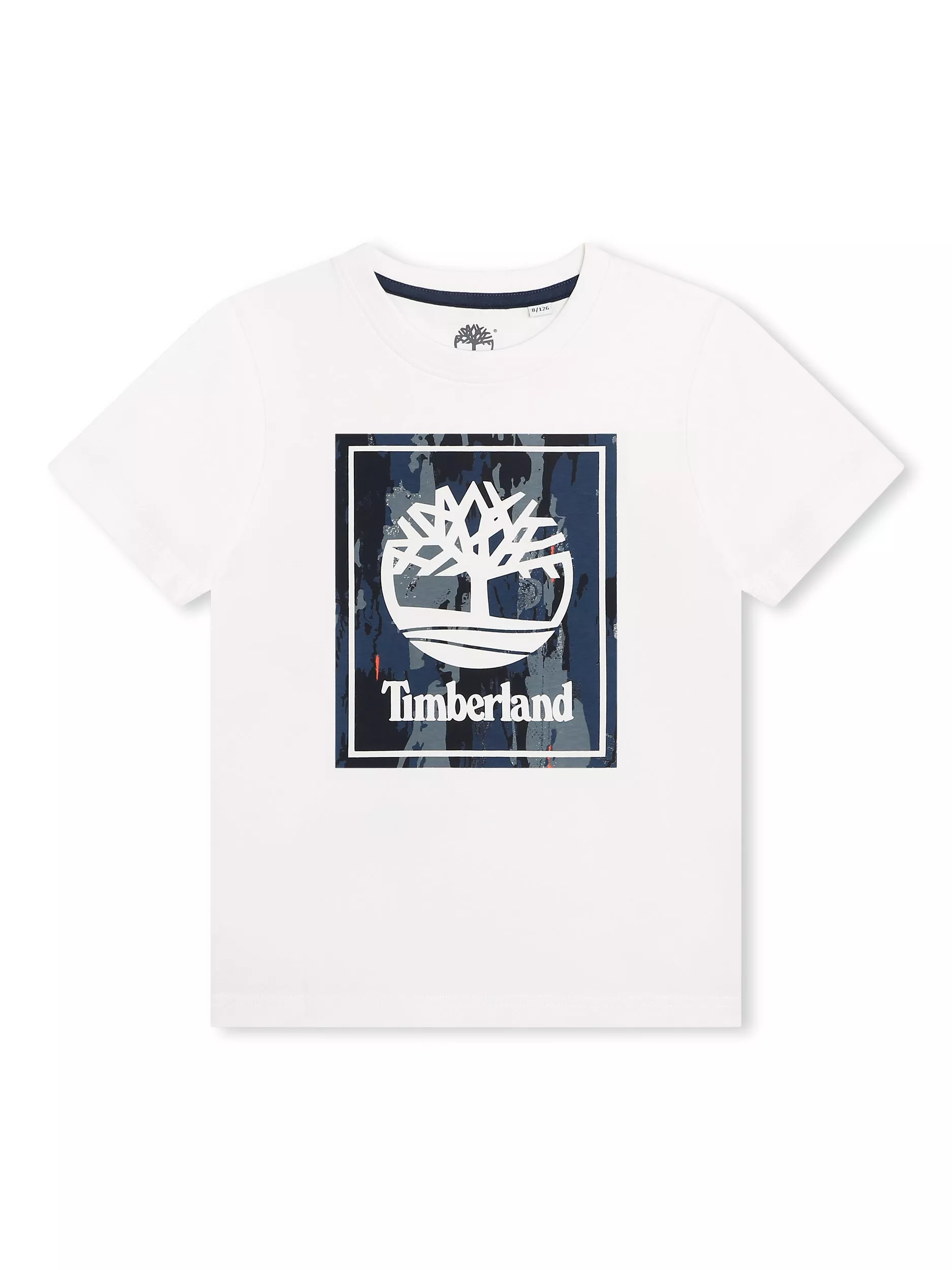 Sporting its unmistakable logo, this short-sleeved t-shirt by Timberland is made from a comfortable cotton blend that's primed for adventures to the park.