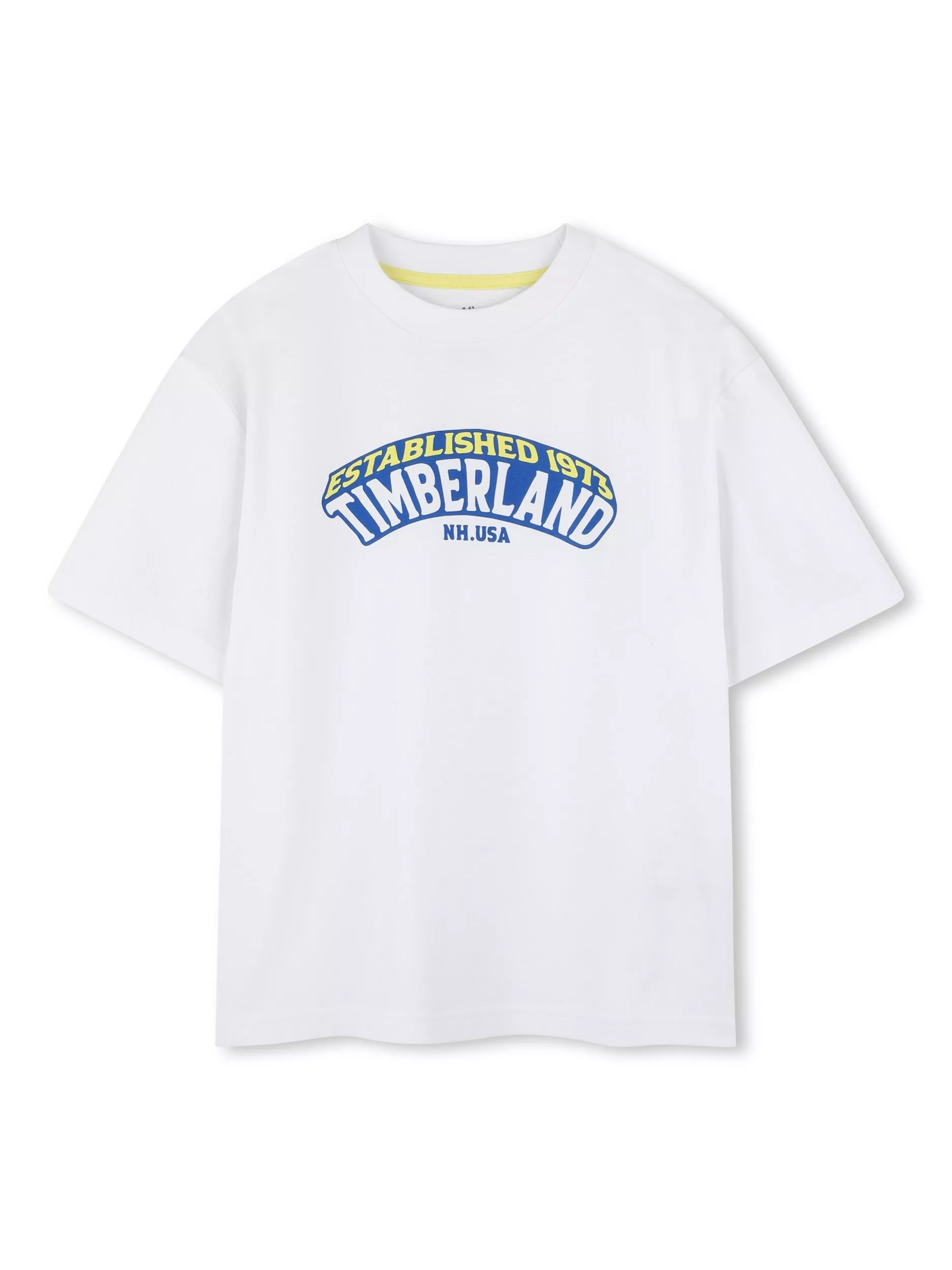 Featuring its logo to the front, this short sleeve loose fit t-shirt from Timberland is cut from soft organic cotton that's kind to delicate skin (even after a full day of running around).