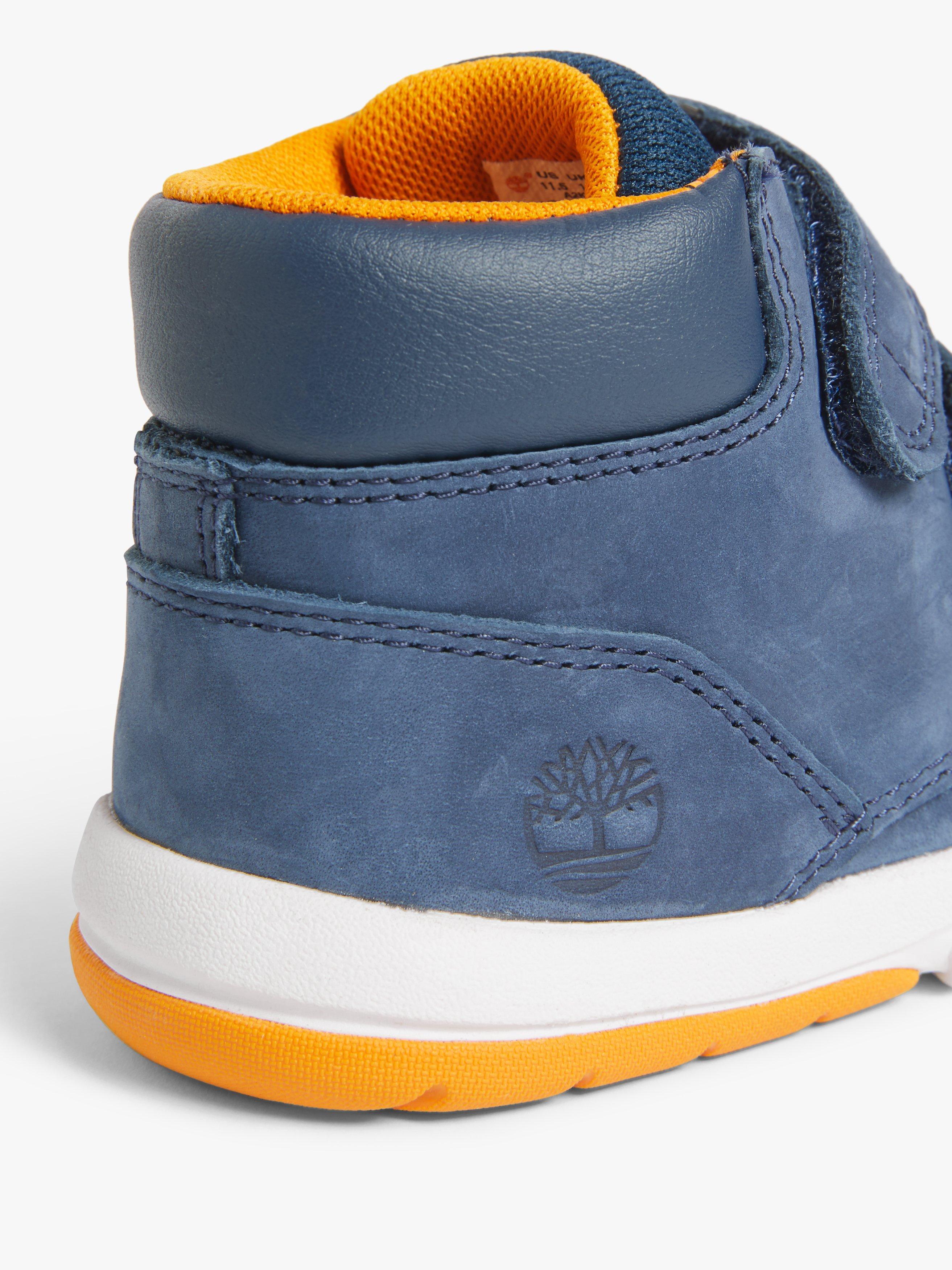 The rip-tape fastening makes them easy to take on and off and the chunky ankle padding makes them comfortable for your mini adventurer. Treated with Timberland's Splash Blaster protector, a breathable coating that protects the boots from splashes and stains.