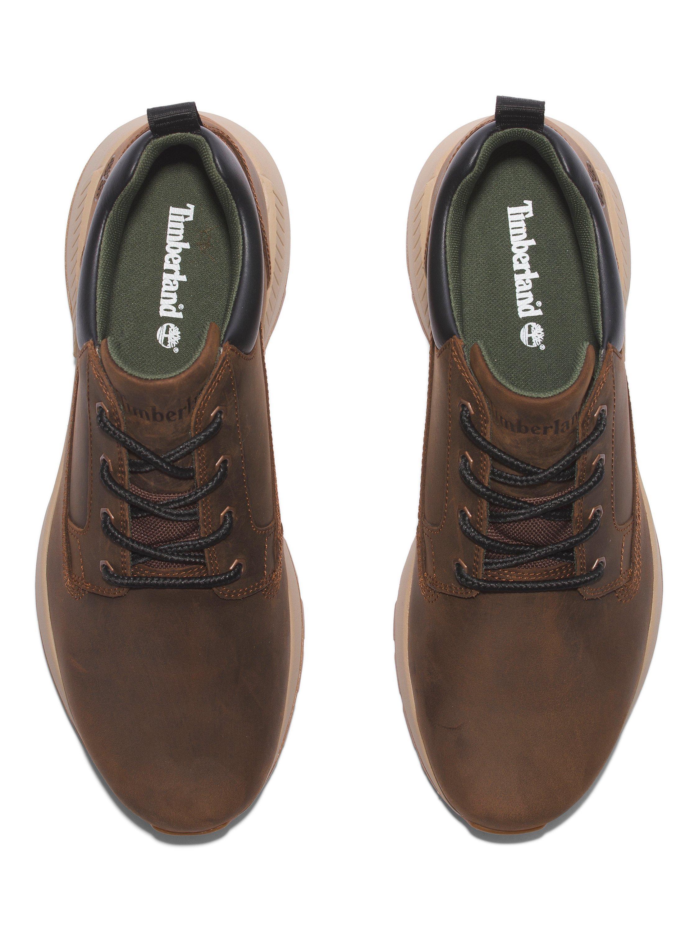 This men's chukka was built to be comfortable and durable, with a design full of fresh style. It features a Premium Timberland® leather upper and a ReBOTL™ fabric lining containing at least 50% recycled plastic. In addition, the lightweight OrthoLite® footbed and a compression-moulded EVA midsole offer cushioning and support. Timberland supports the responsible manufacturing of leather through the Leather Working Group.