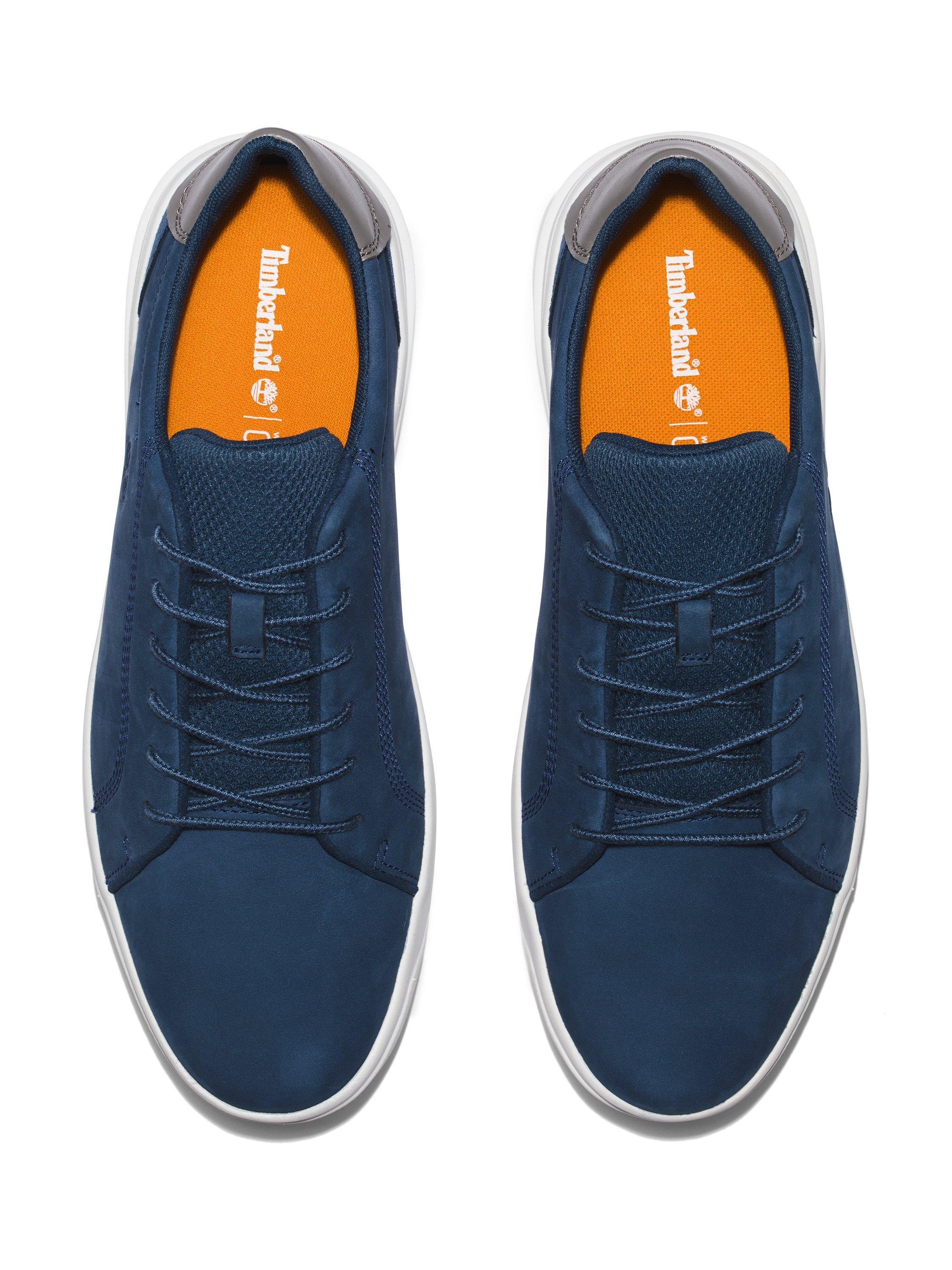The Seneca Bay low trainer by Timberland mixes casual and up-tempo style with the look and comfort of a trainer. It features the durable construction of Premium Timberland® leather, ReBOTL fabric lining containing at least 50% recycled plastic, and the comfort of an OrthoLite® foam footbed that helps to cushion as well as working to reduce unwanted moisture and odour.