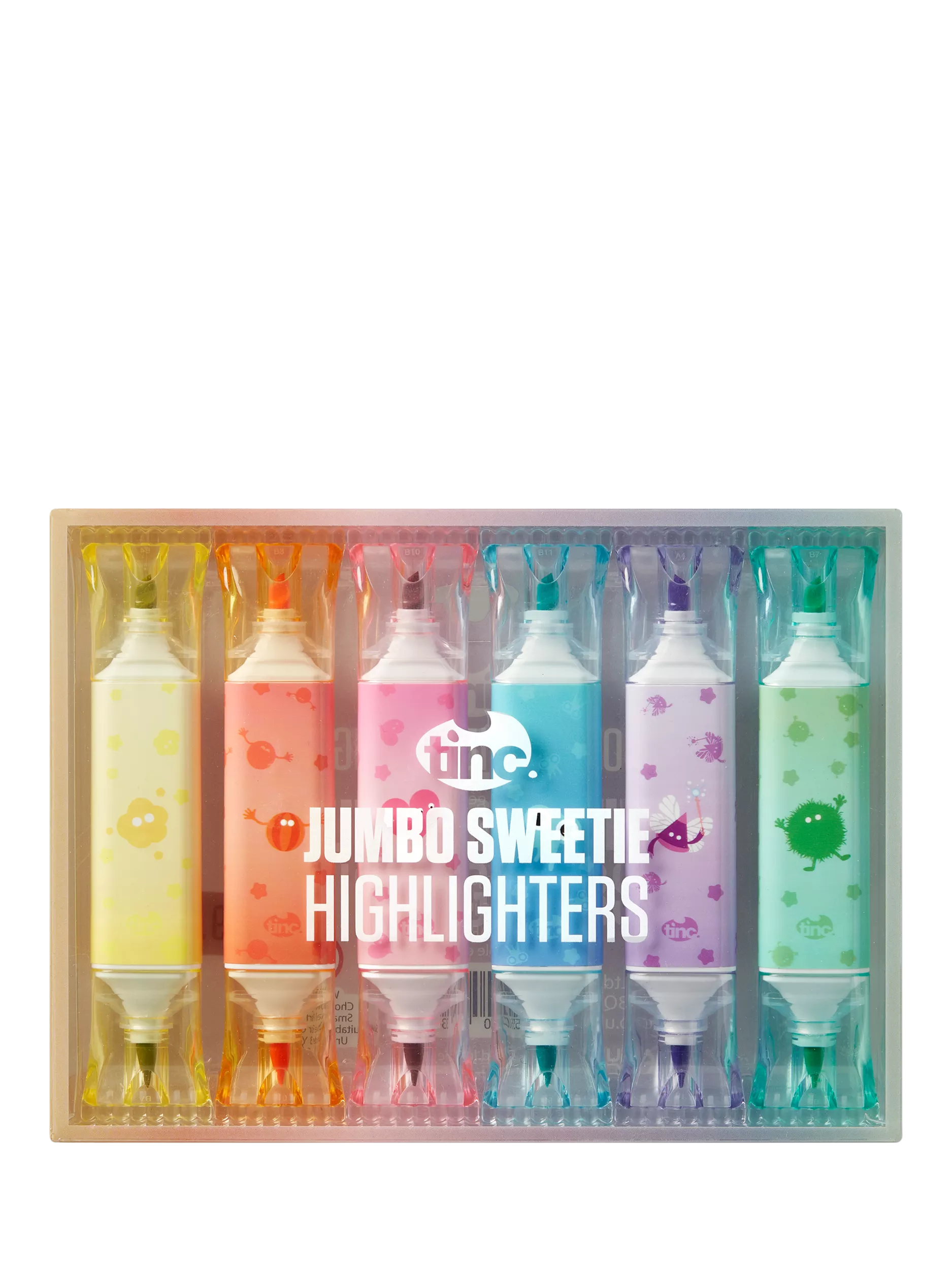 Six highlighter pens with with a wide nib at one end and a pointed nib at the other - great for drawing, crafting, labelling and highlighting documents.