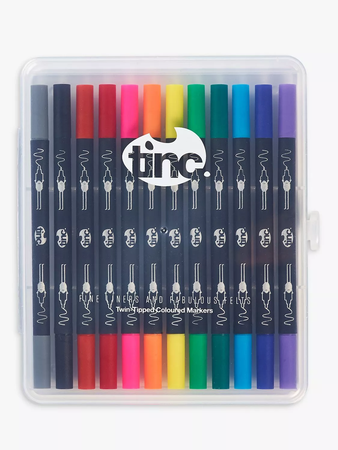 With 12 colour options, get some more colour in your life with these Duo Tipped Fineliner and Felt Tip Pens! 12 Colour Pen sDuo tip with fineliner and thicker felt tip in a handy carry case for storage.