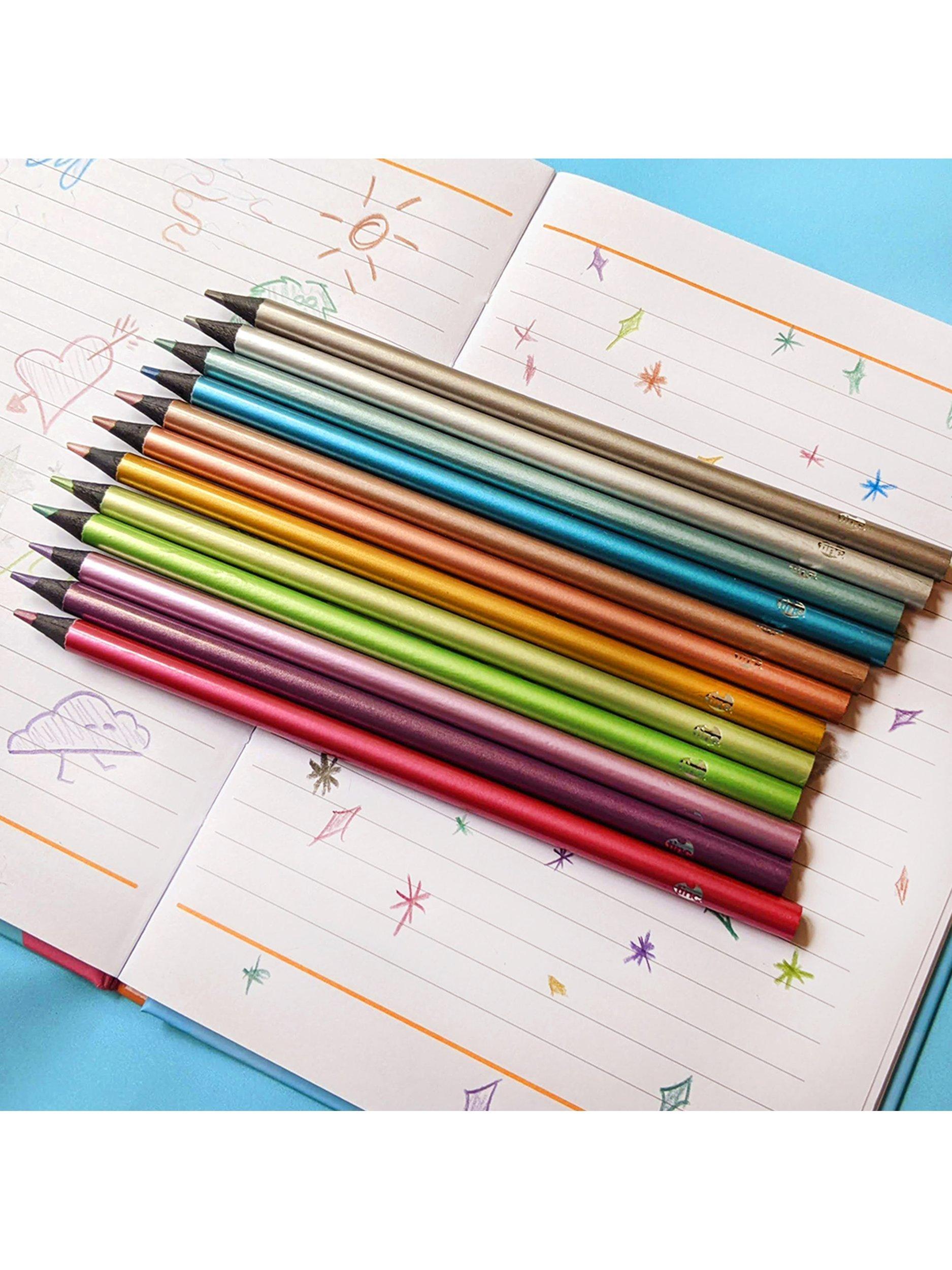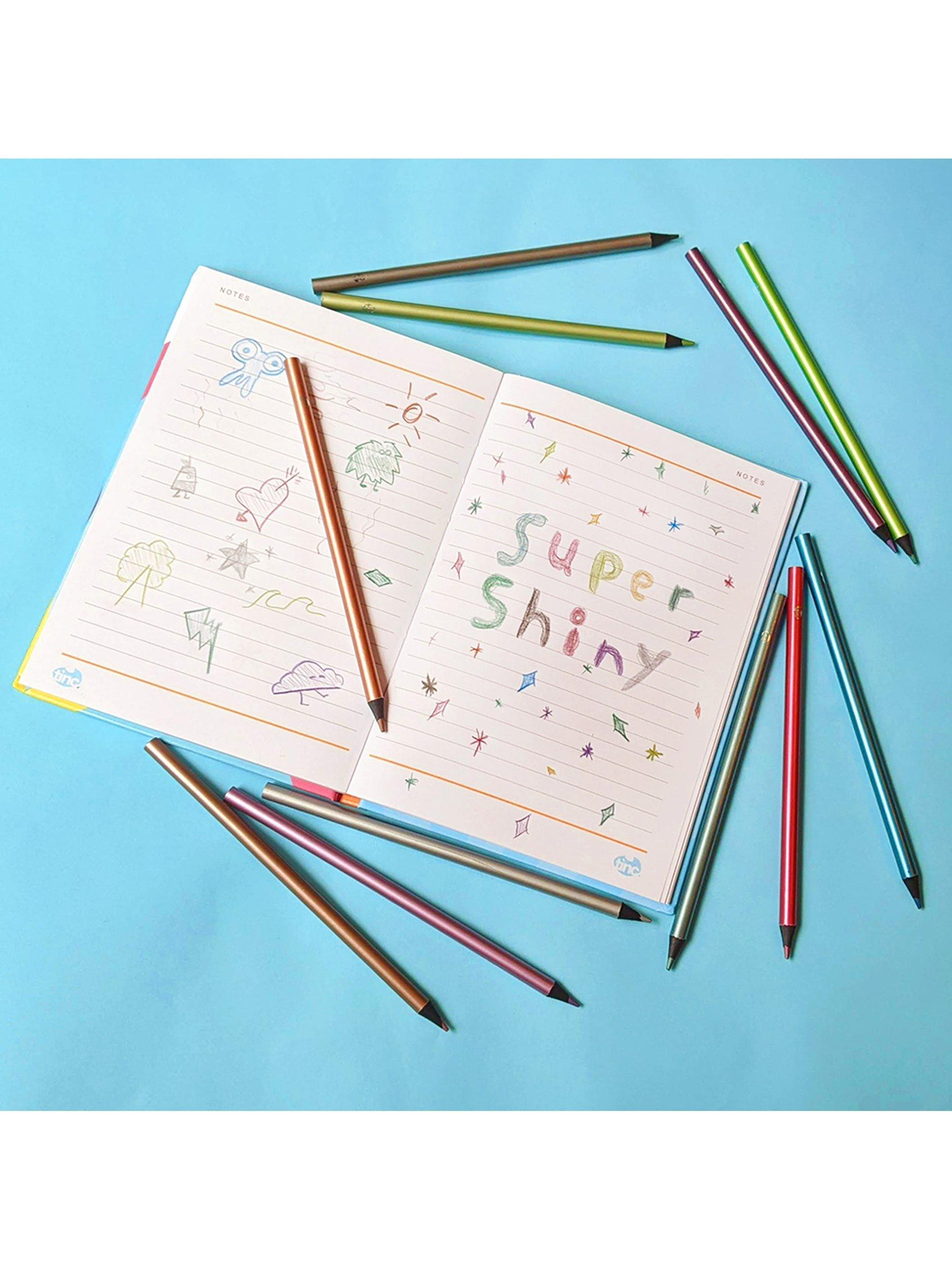 Get creative with this Colouring Pencil Set for Kids! Pencils full of shimmer and shine. Great for School or Home, the Metalic Pencil Set contains twelve wonderfully crafted pencils with a super sparkly finish to add that touch of magic to your notes, offering a wide choice of bright and vivid colours with a stylish design