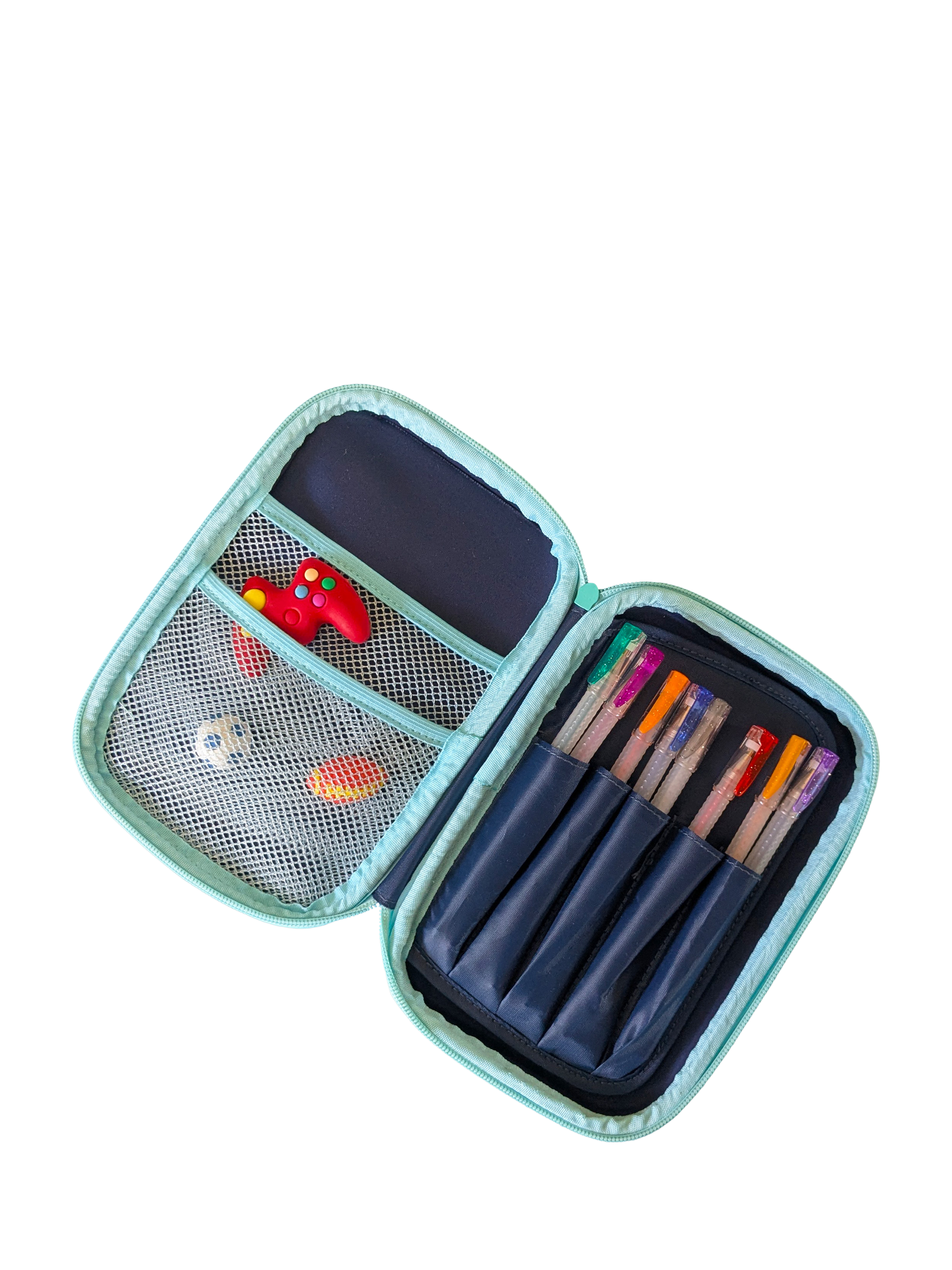 A hard-top pencil case. Open the zip and organise your stationery ready to take to school and get creative!