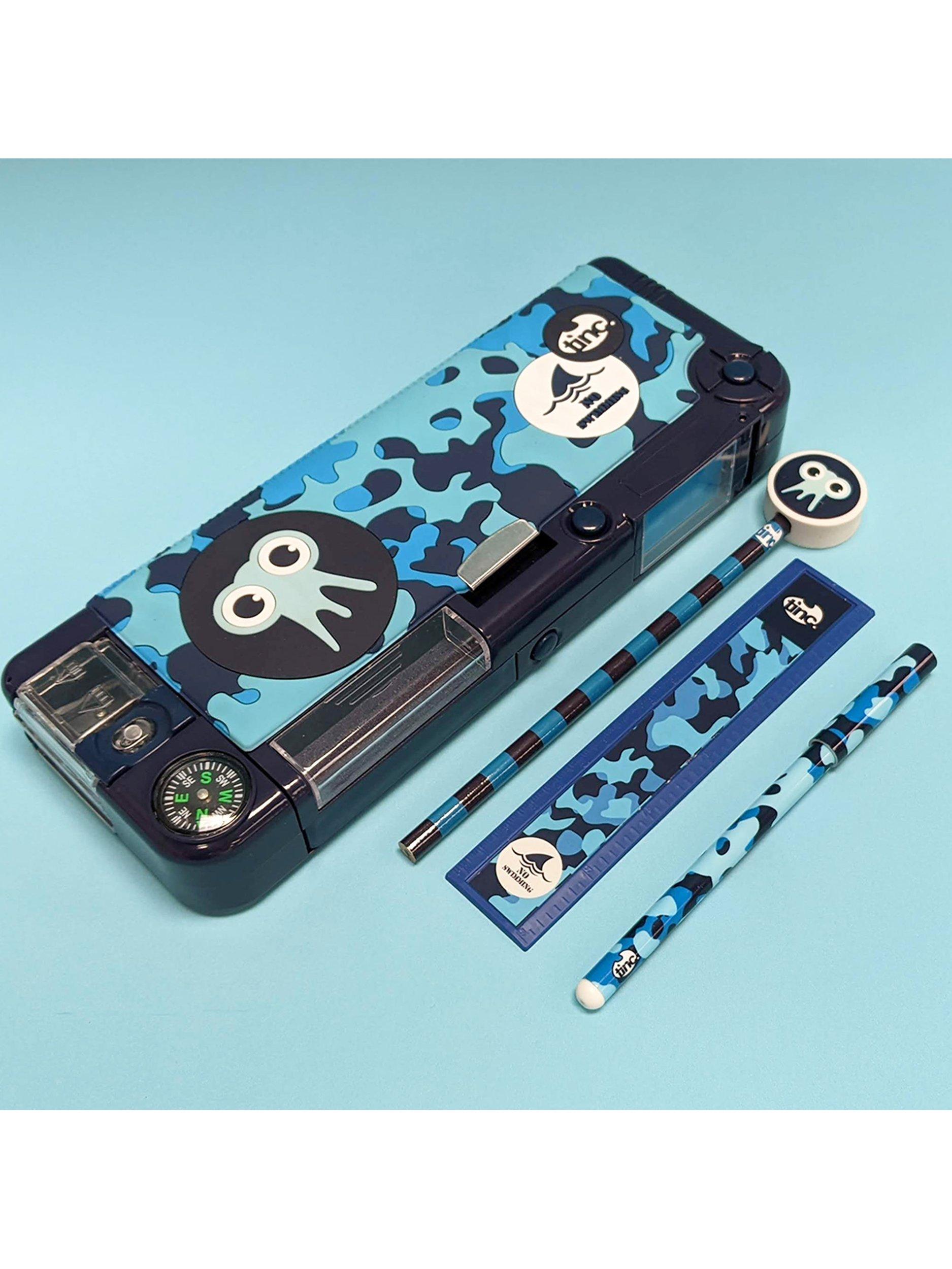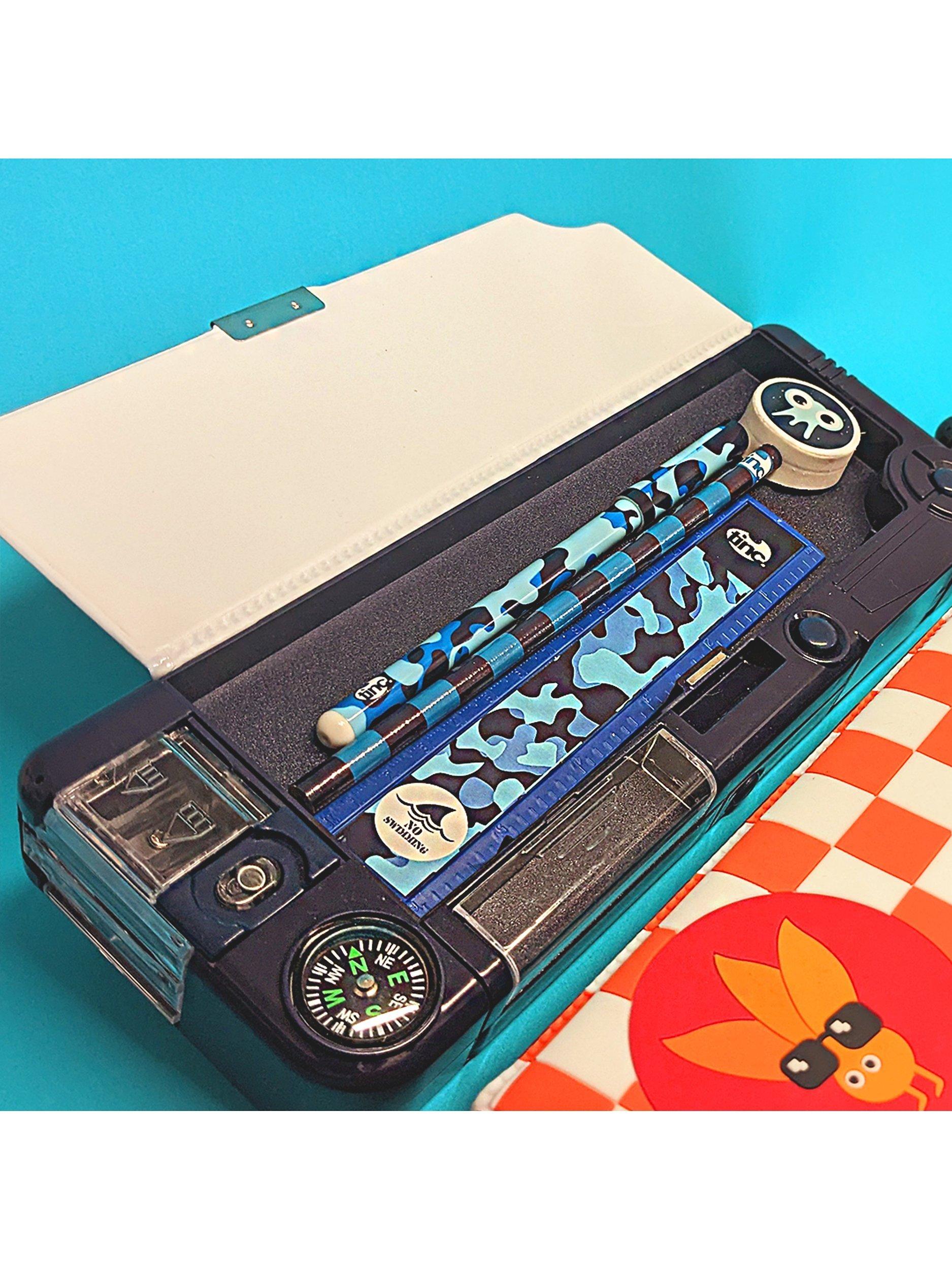 Get set for school with the ultimate Tonkin Filled Compartment Pencil Case! Designed with small and large compartments, durable snap shut lid - just push buttons to open the secret compartments!